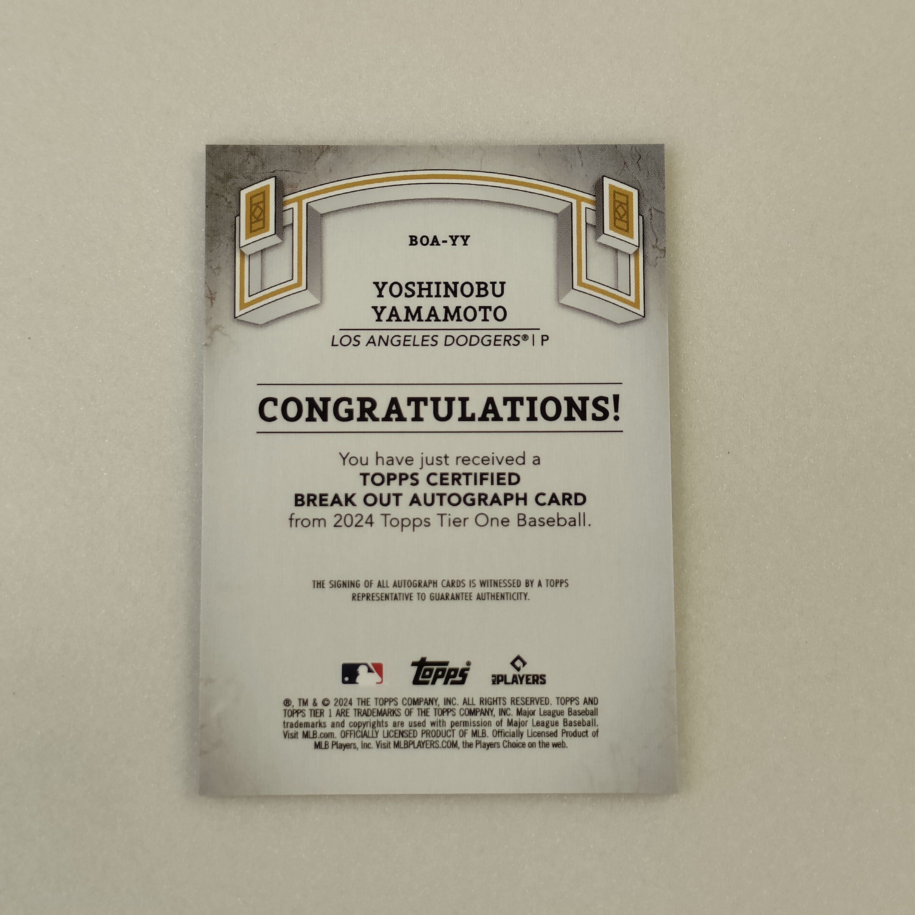 2024 Topps TIER ONE Yoshinobu yamamoto RC 棒球,tier one,MLB,洛杉矶 道奇队,山本由伸,总冠军,FMVP!!!44/75,蓝平行,新秀RC,卡签