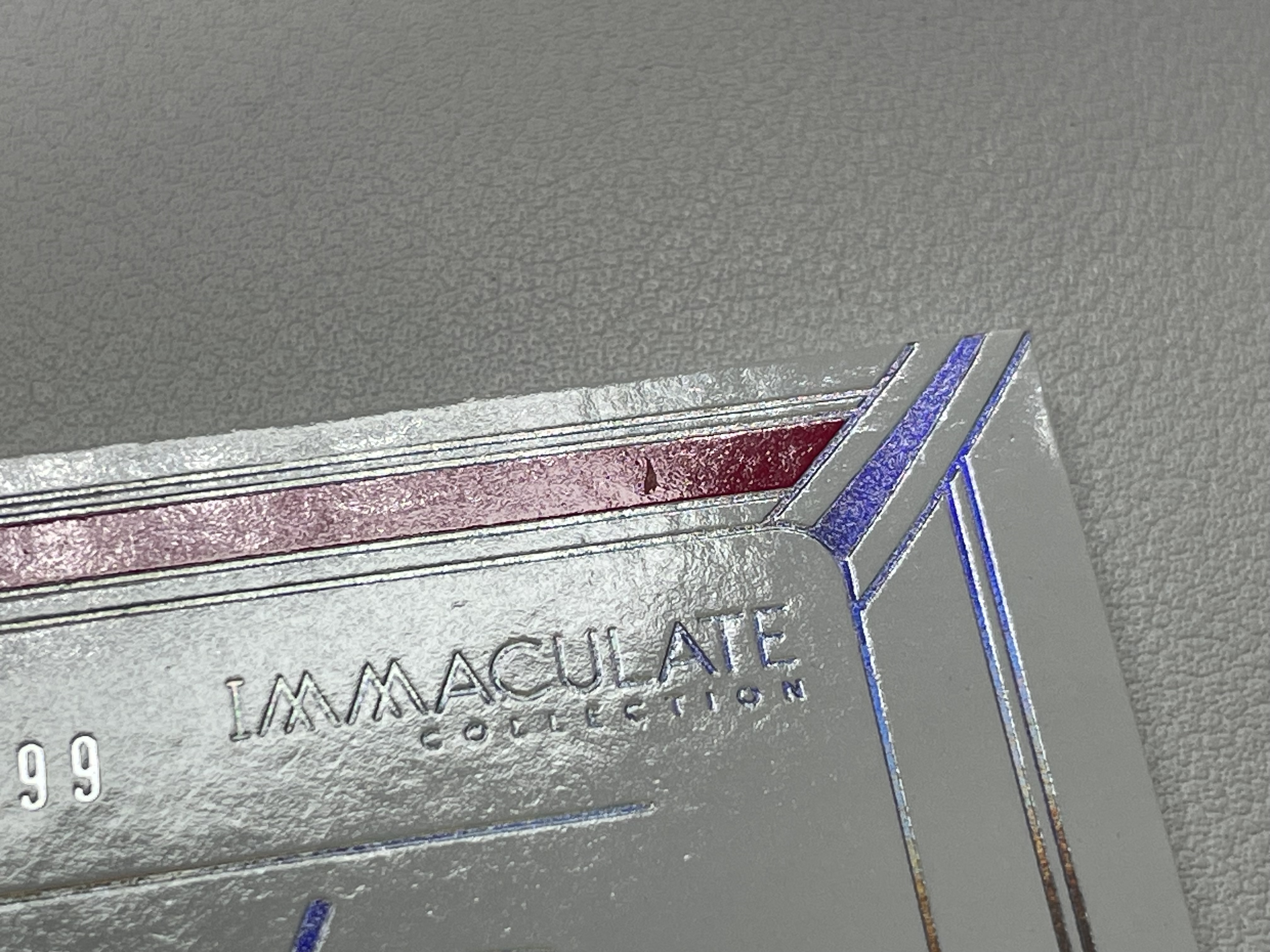 厚卡系列,轻微白边白角属于正常现象!镜面系列等卡面轻印划痕、印刷自带痕迹或覆膜不平起泡等卡片自身问题均为通行品。老卡有白边白角属于正常卡品。原封砖,评级卡砖上的划痕和轻微破损以及评级砖内的卡有卡品问题一律不属于品相问题。折射(薄卡)系列表面的轻微划痕为正常卡品,正反面“竖线/横线”属于印刷线,并不影响评级结果。