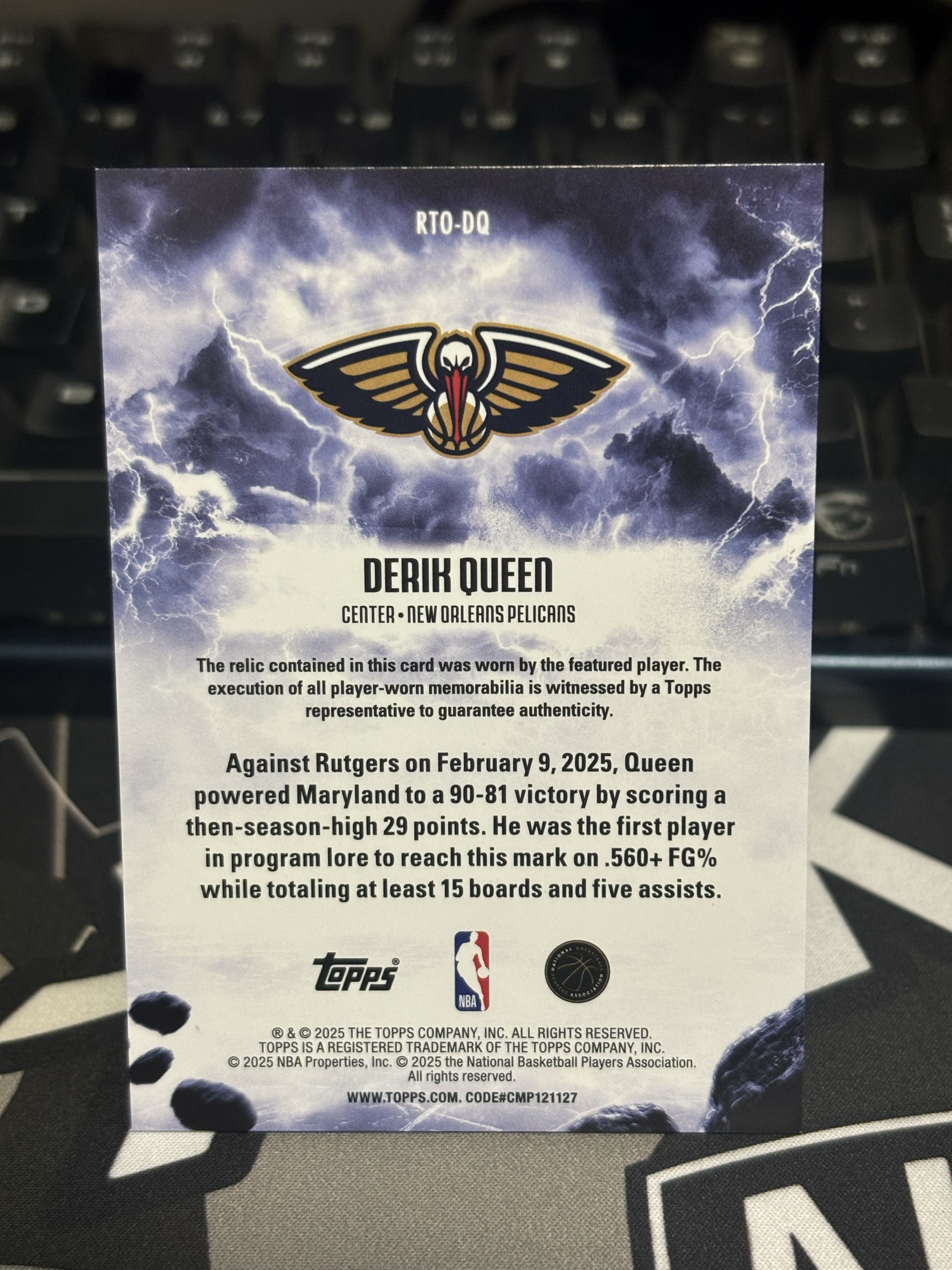 2025 Topps Basketball Derik Queen RC 鹈鹕队 德里克 奎因 新秀 首秀小窗物料切割 锡安 威廉姆斯、乔丹 普尔队友 弗拉格同届 不保卡品