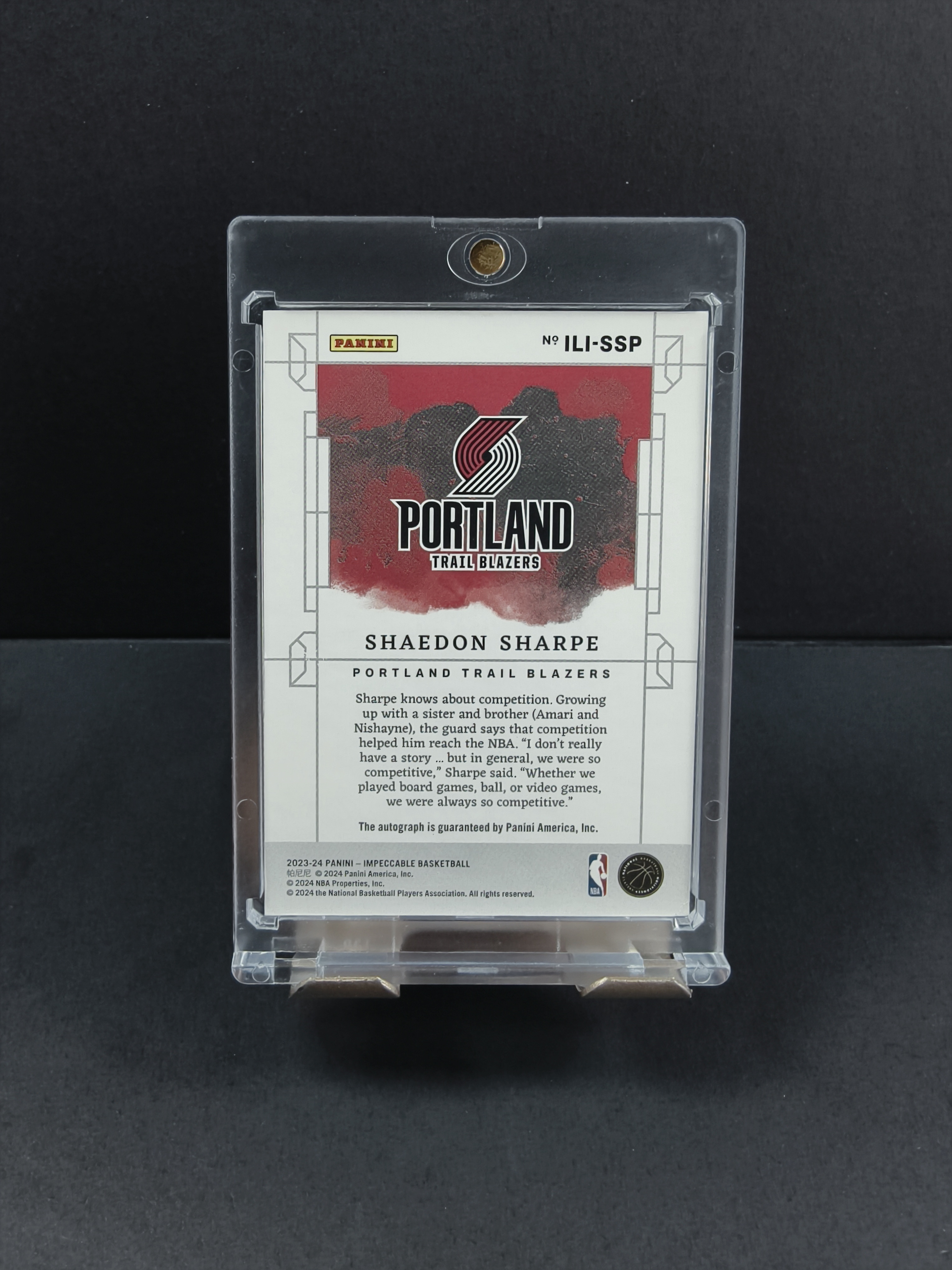2023-24 Panini Impeccable Shaedon Sharpe 谢登 夏普 小真金系列 全球限量发售56/75编 稀有珍贵 签字 卡签 画布签