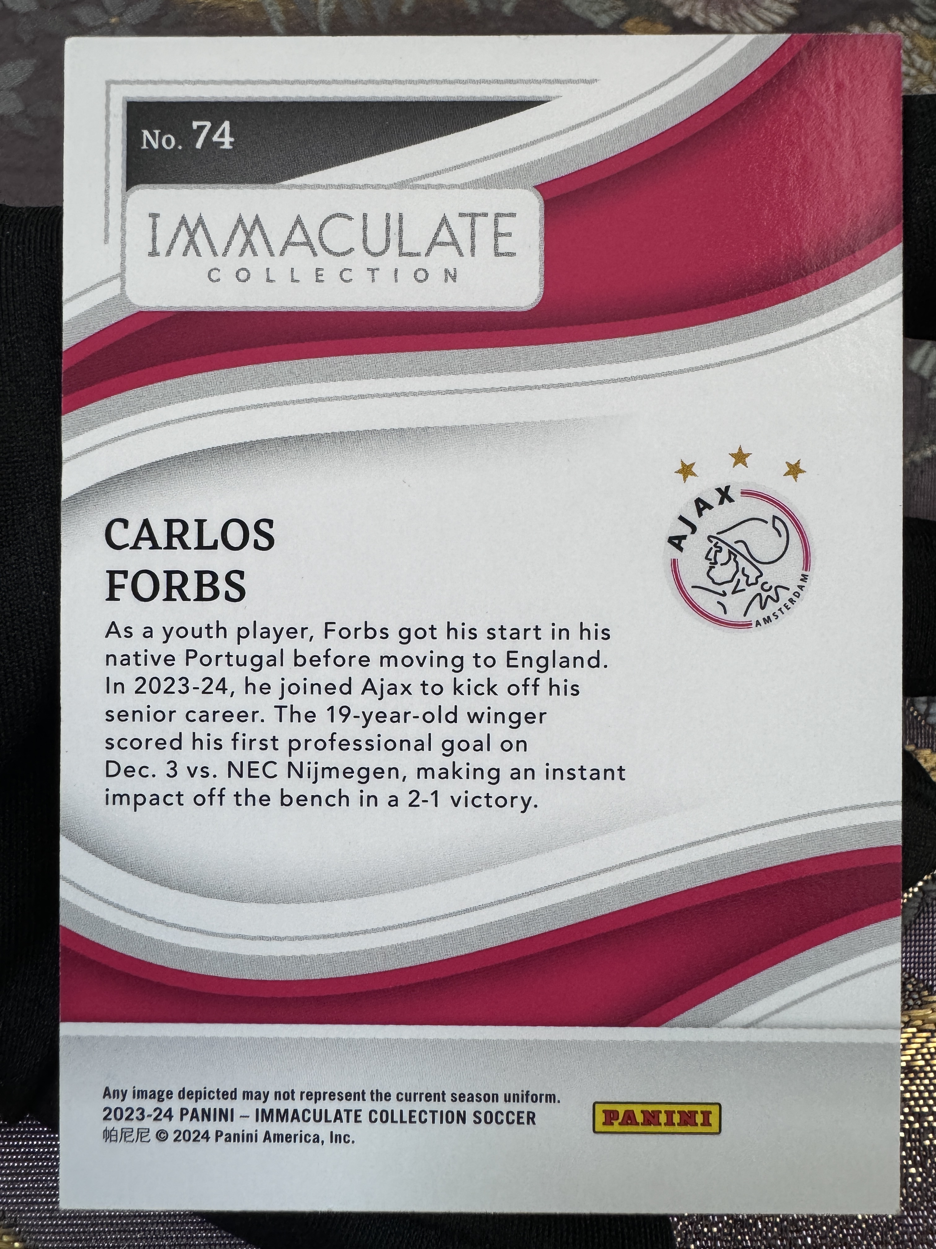 2024 Panini Immaculate CARLOS FORBS RC IMM 爱咪咪 阿贾克斯 葡萄牙 超级小妖 卡洛斯 福布斯 新秀正RC标 投资大热 红平行 04/19编 低编 实卡精美