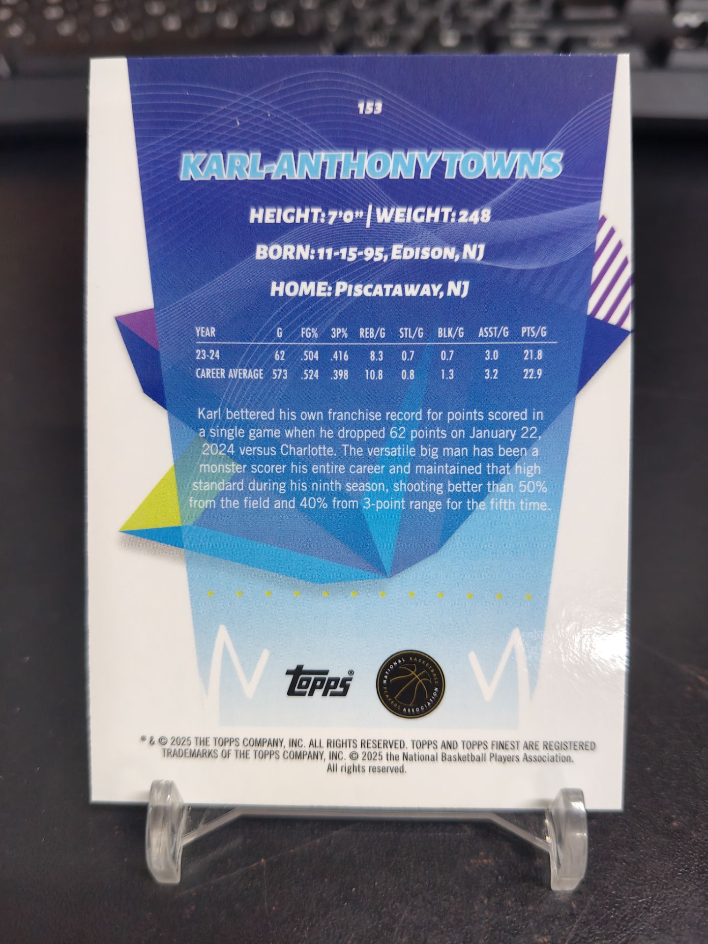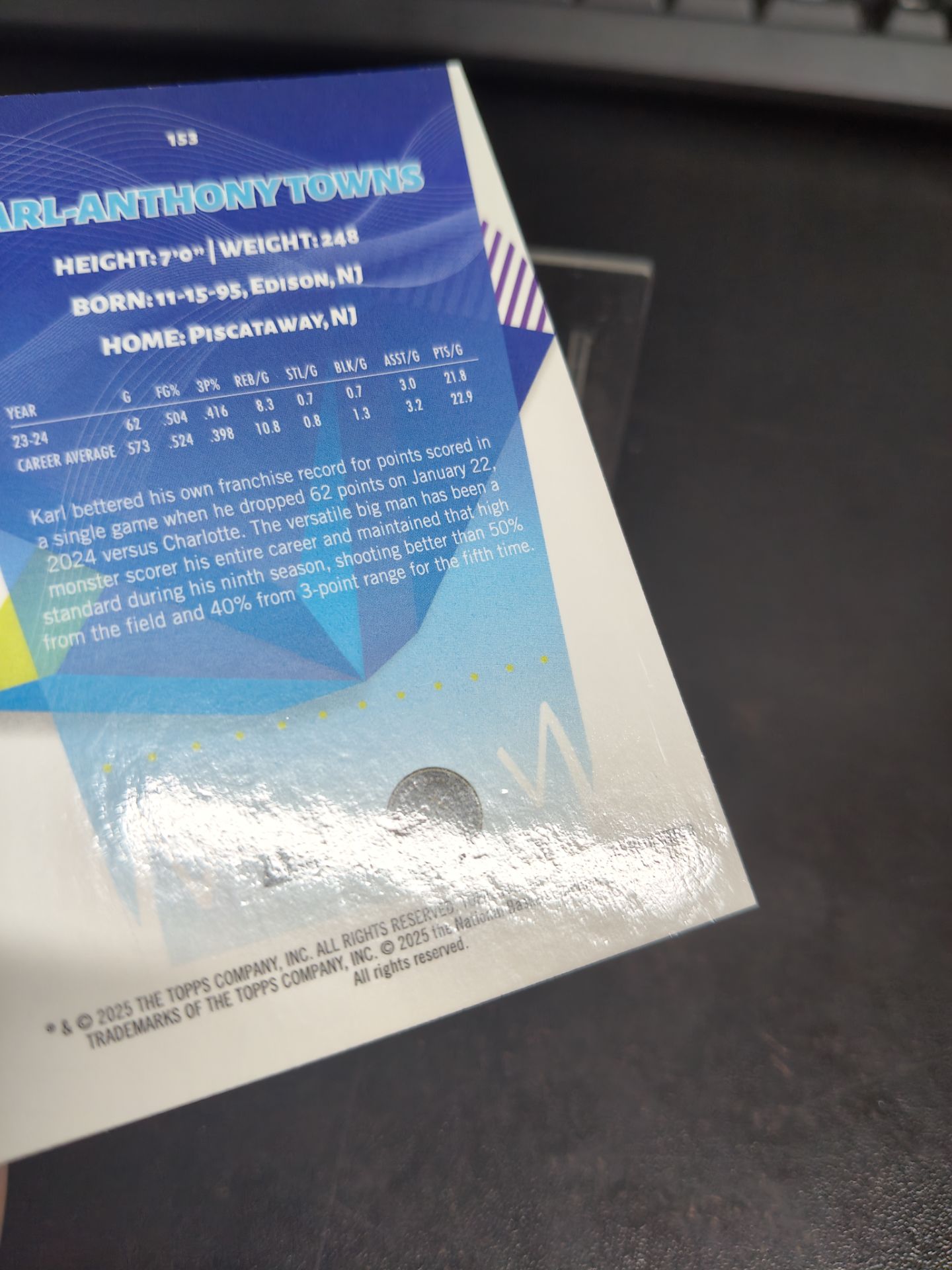 【浩行拍卖 截标预付82%】2025 topps finest Karl Anthony towns 卡尔 安东尼 唐斯 紫折 折射 128/150编 专收必备 瑕疵看图「旧时233」1103M02夢