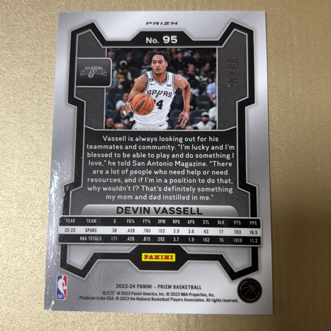 2023-24 Panini Prizm Devin Vassell 德文 瓦塞尔 prizm 三色波纹折 88编 折射 马刺 黄粉橙波纹折