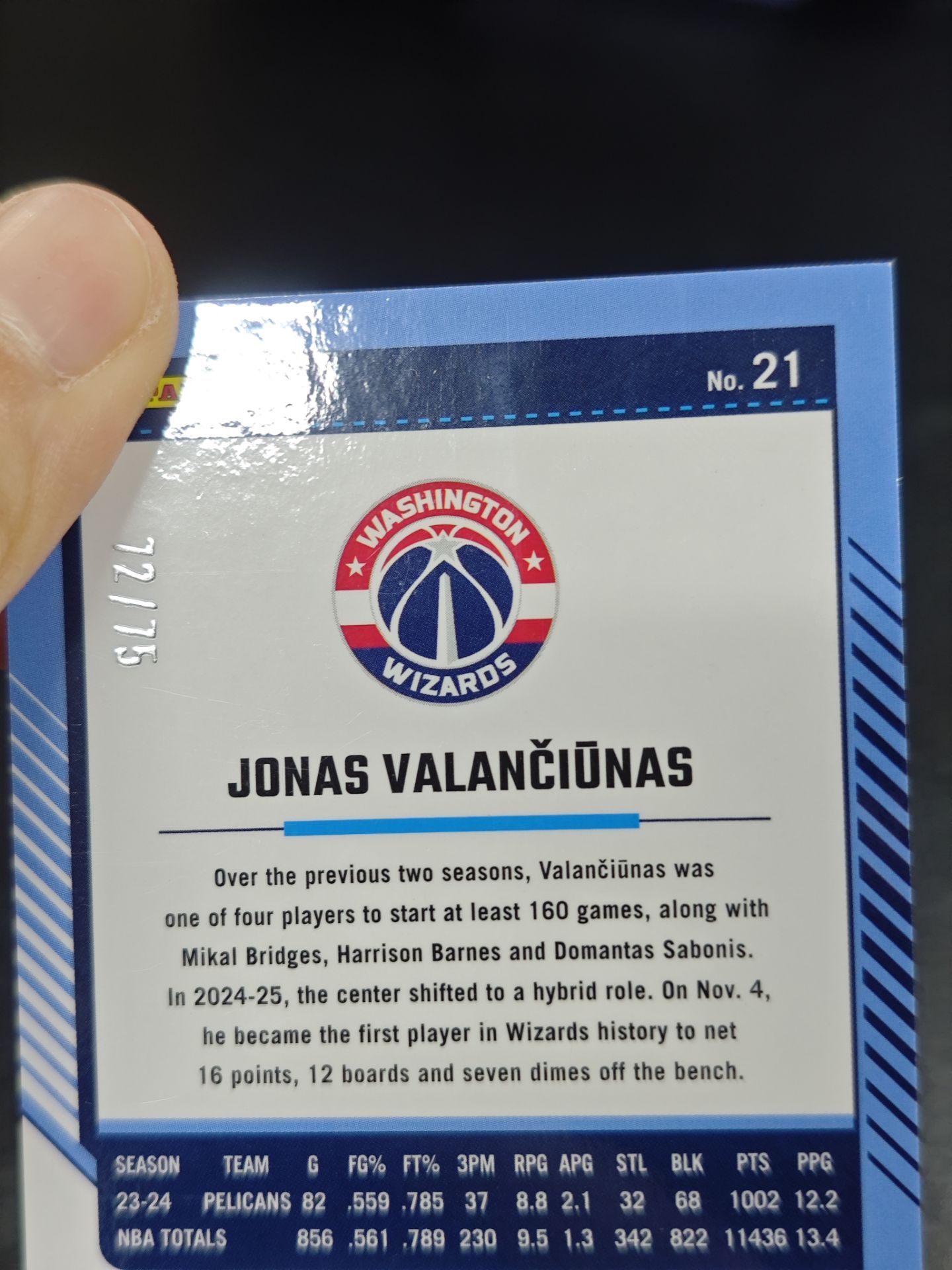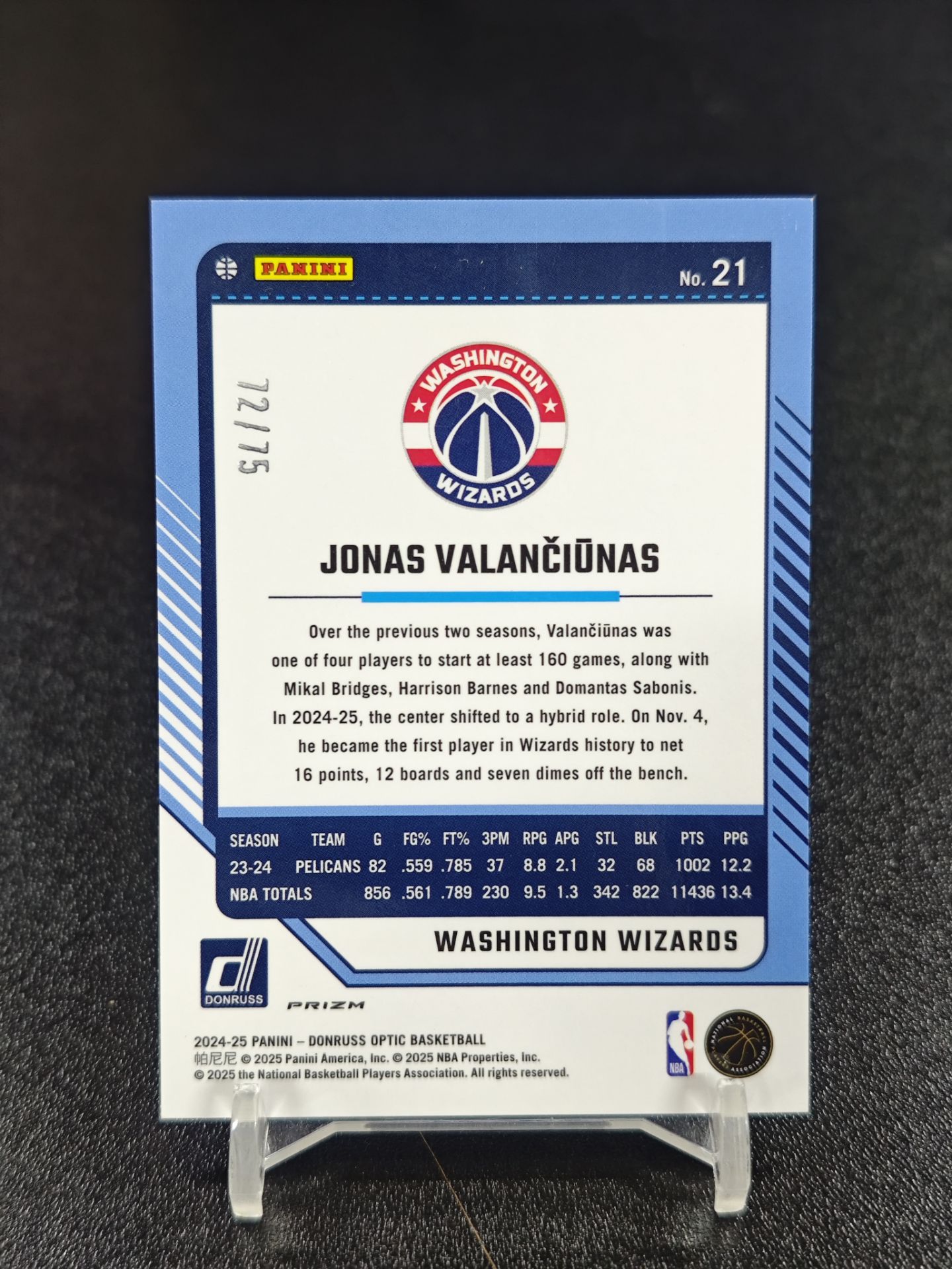 【浩行拍卖 截标预付82%】2024-25 panini Donruss optic Jonas Valanciunas 杜蕾斯 奇才 瓦兰丘纳斯 瓦兰修纳斯 圈圈折 黑金折 折射 72/75编 瑕疵看图 专收必备「称呼」1103S03單