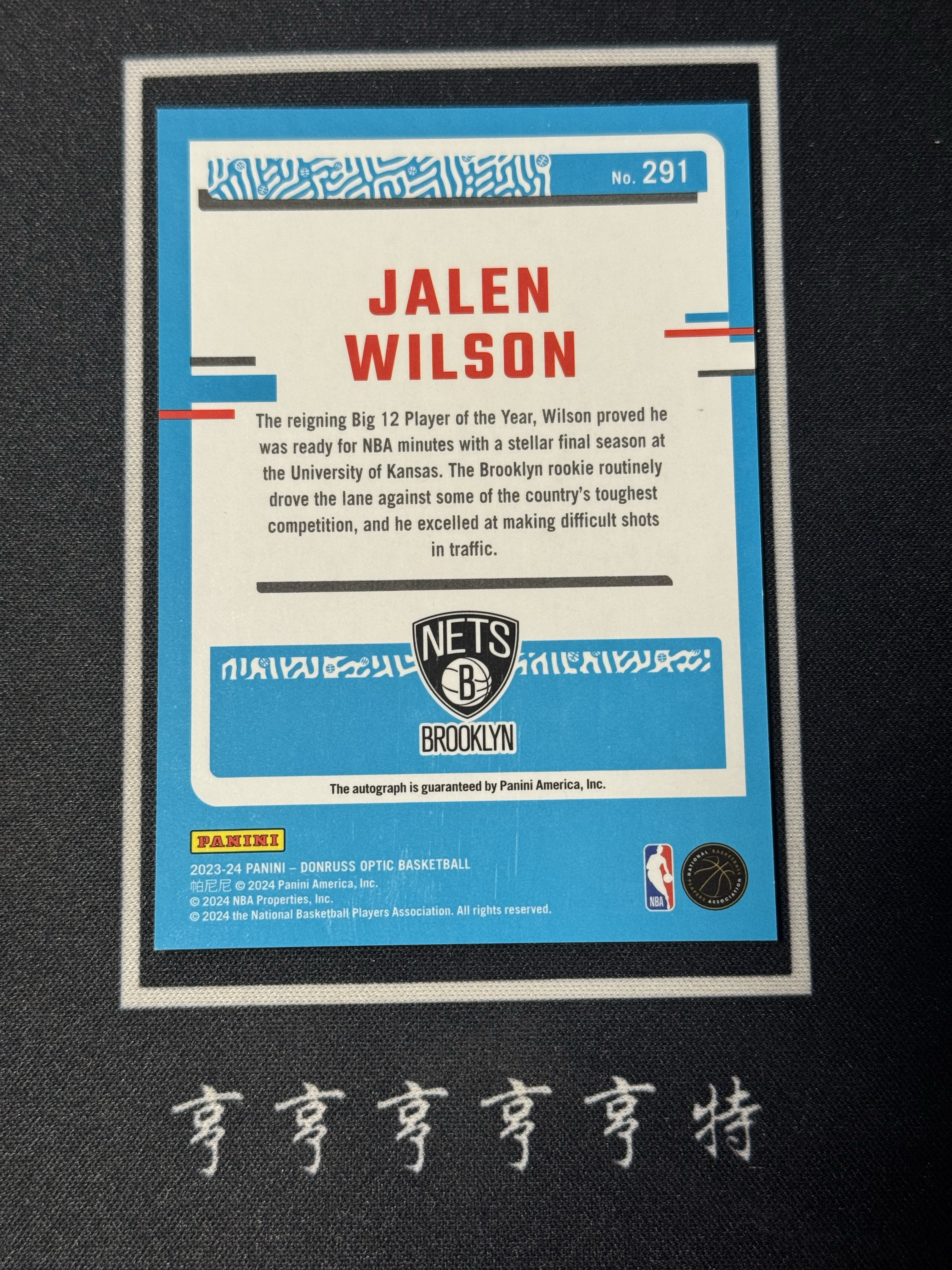2023-24 Panini Optic Jalen Wilson RC 篮网 杰伦 威尔逊 新秀 op系列 签字 卡签 至尊