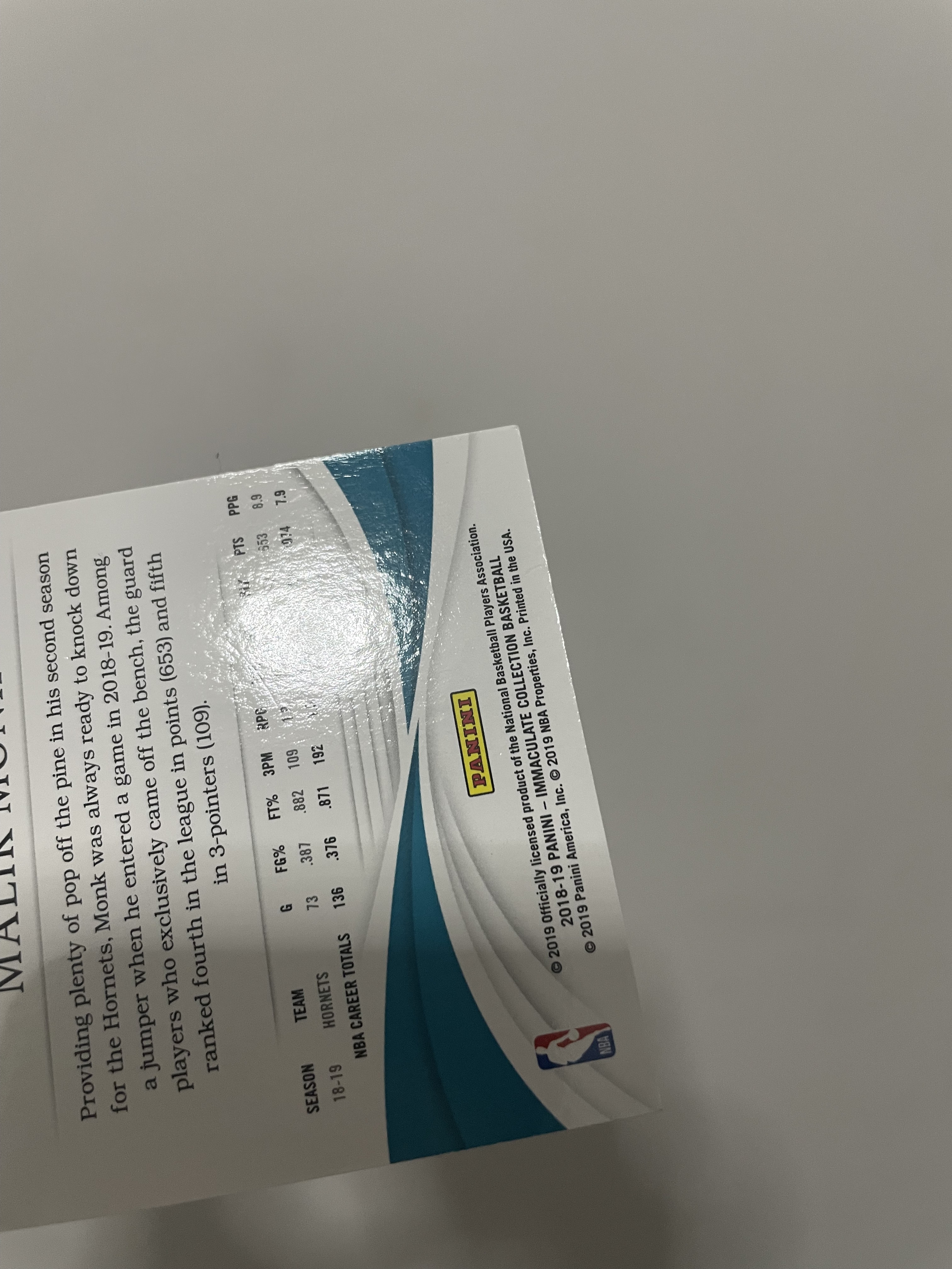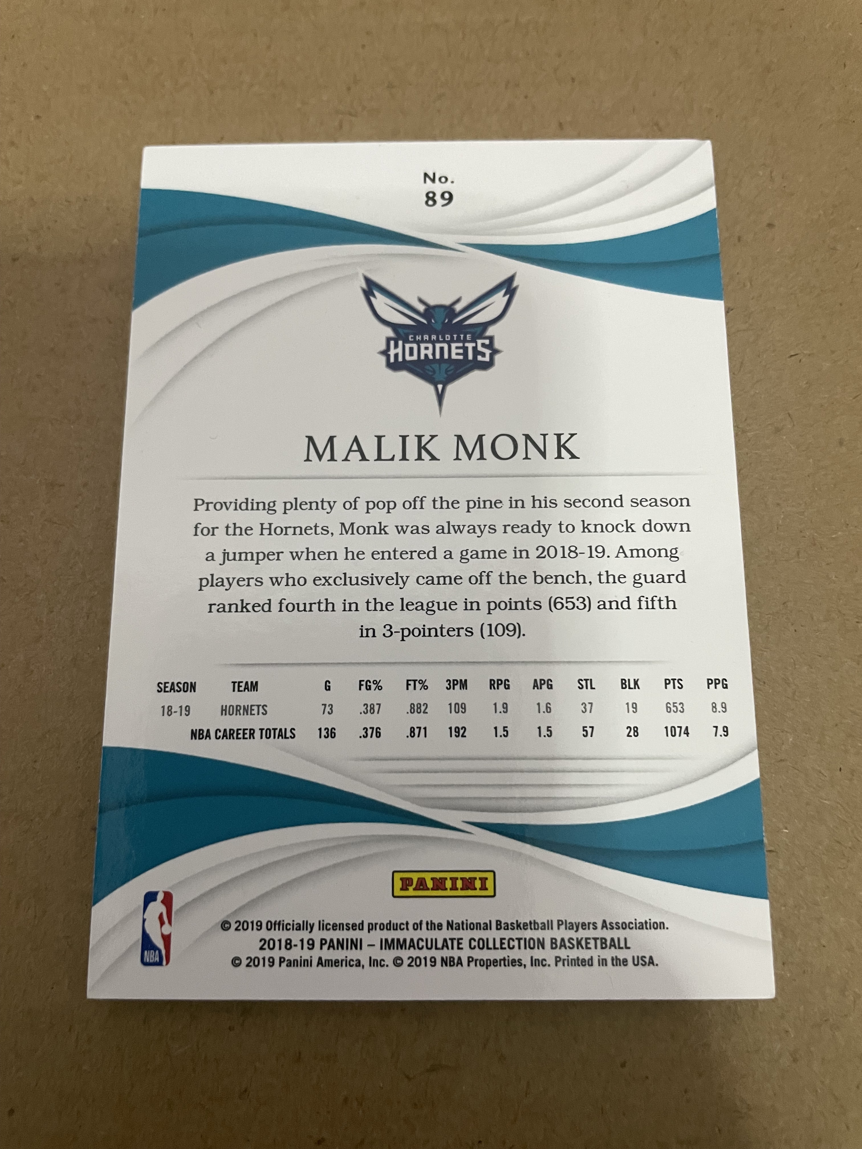 2018-19 Panini Immaculate Malik Monk IMM 黄蜂队 马利克 蒙克 base 厚卡 普卡 41/99编