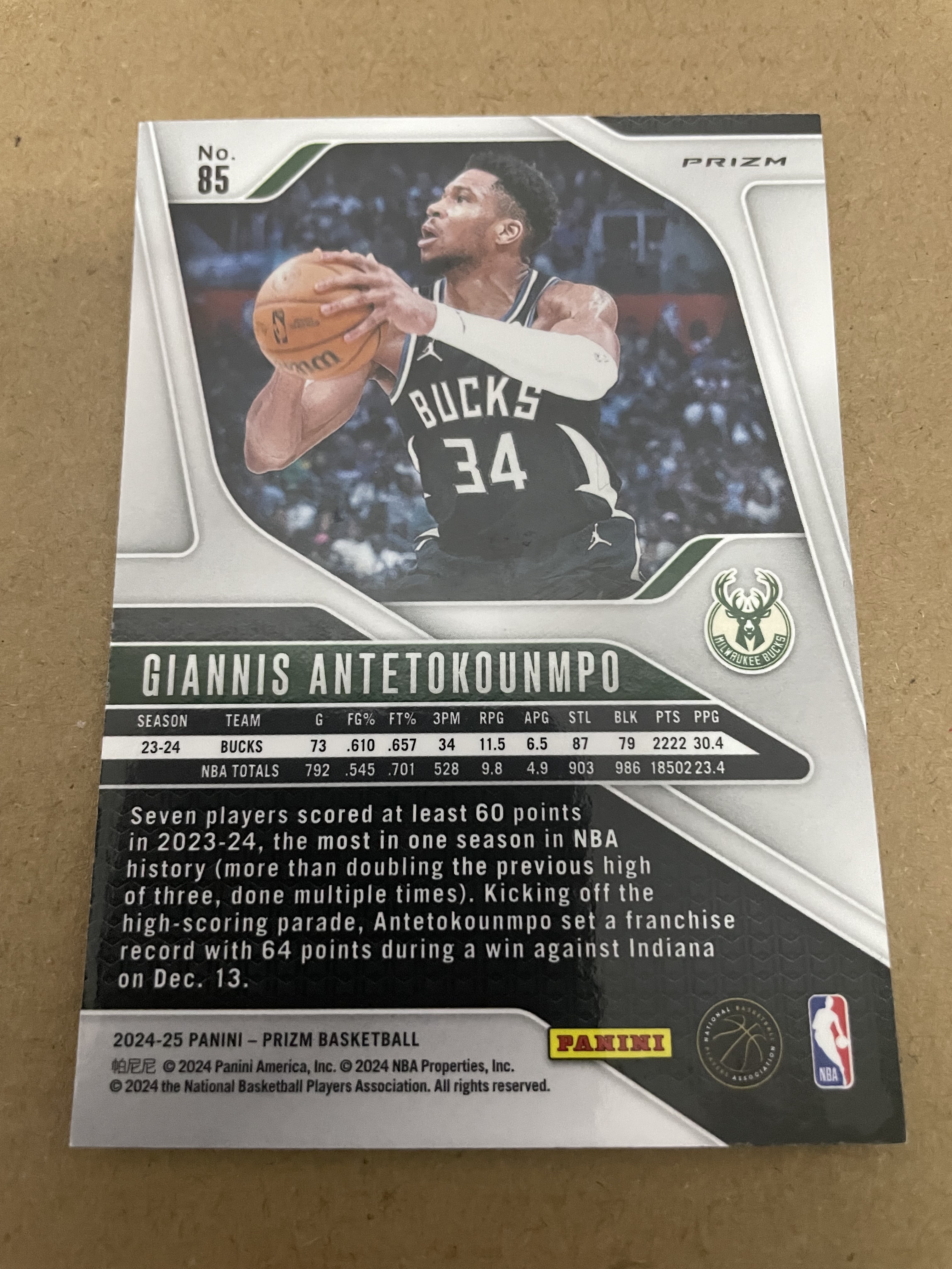 2024-25 Panini 补偿包 Giannis Antetokounmpo 雄鹿队 字母哥 红闪折 折射 base