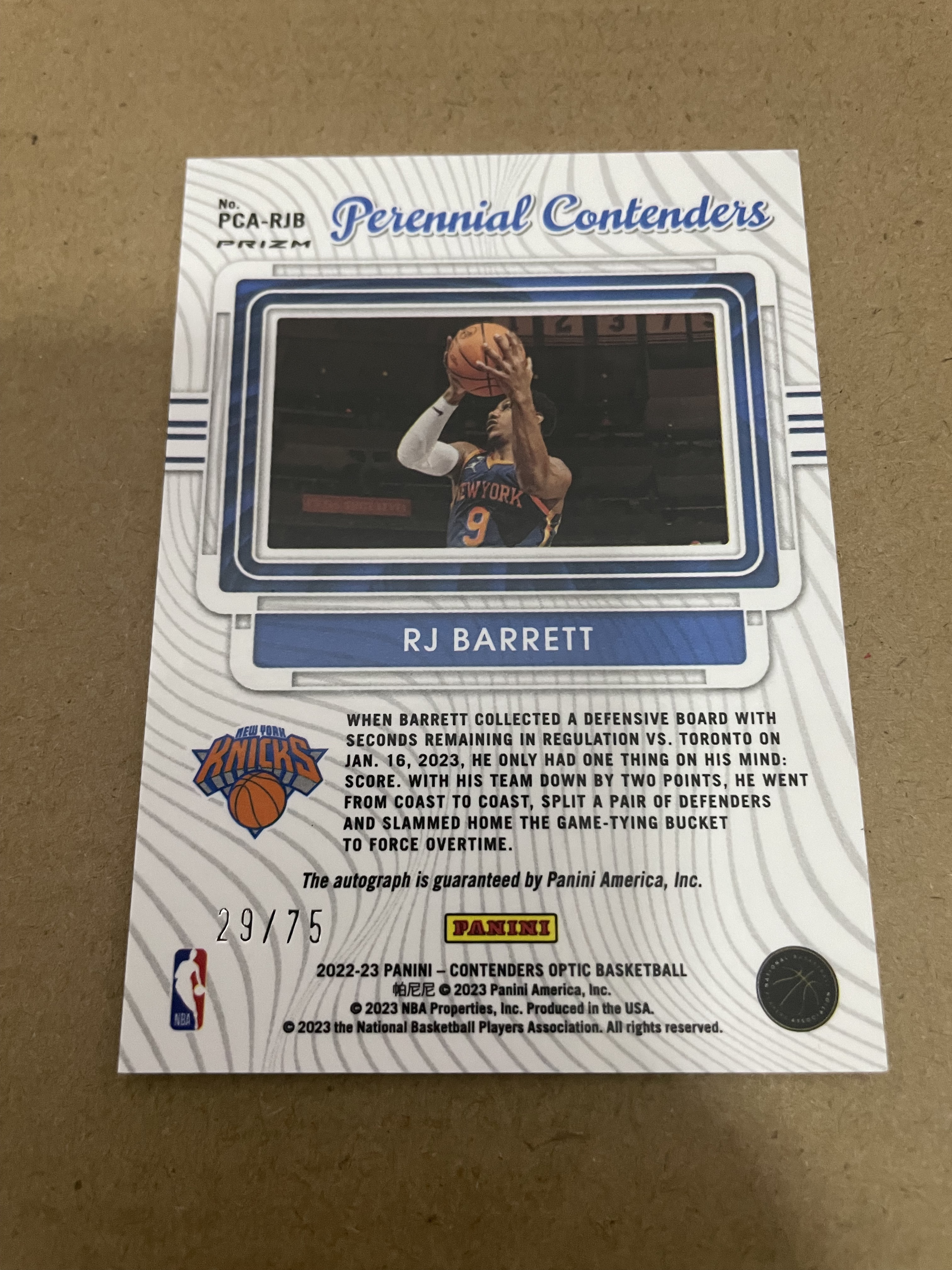 2022-23 Panini Contenders Optic R.J. Barrett 球票 op 尼克斯队 巴雷特 RJB 蓝折 签字 贴纸签 29/75编