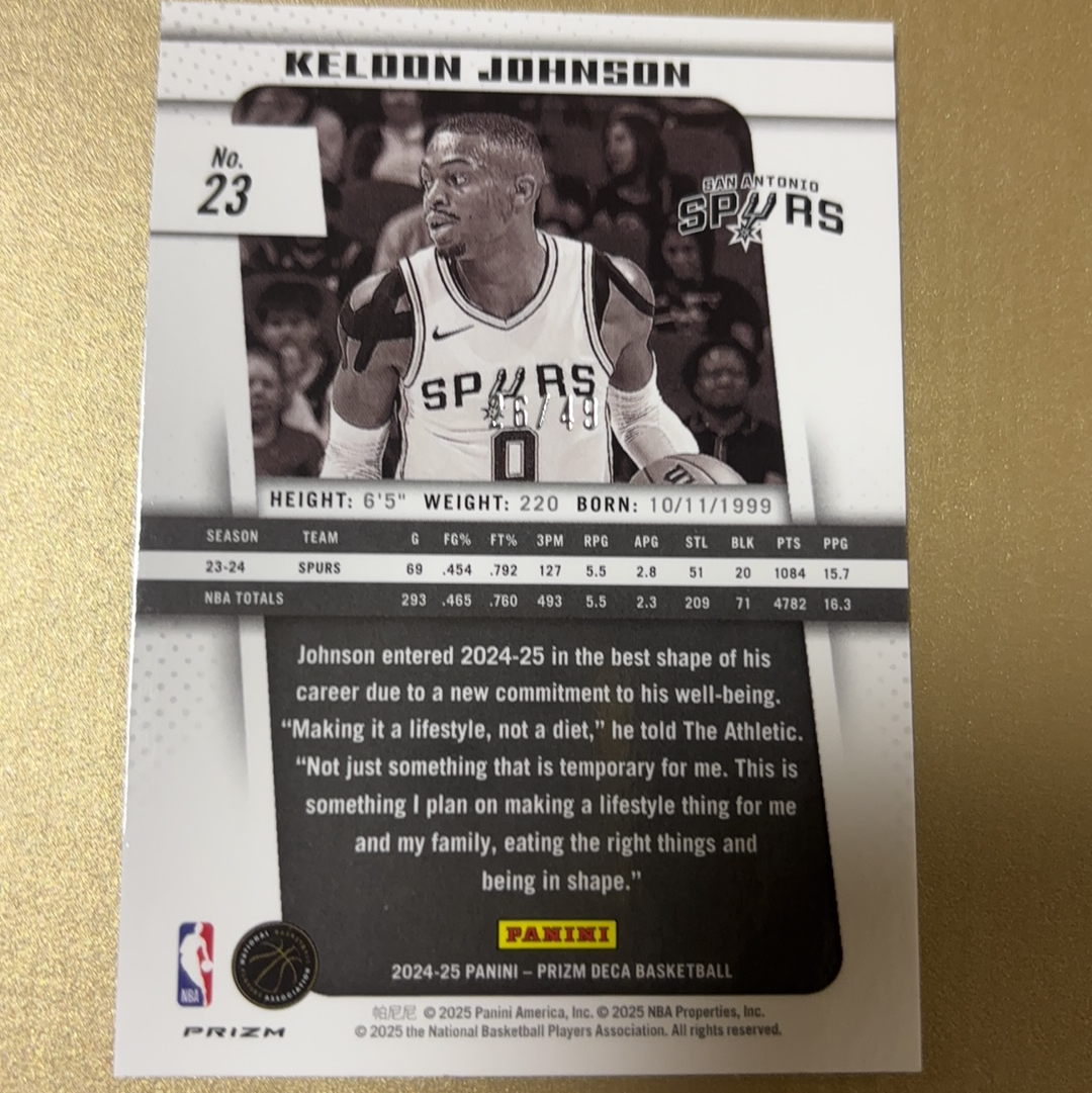 2024-25 Panini Prizm Keldon Johnson 凯尔登 约翰逊 prizm 橙折 49编 折射 马刺