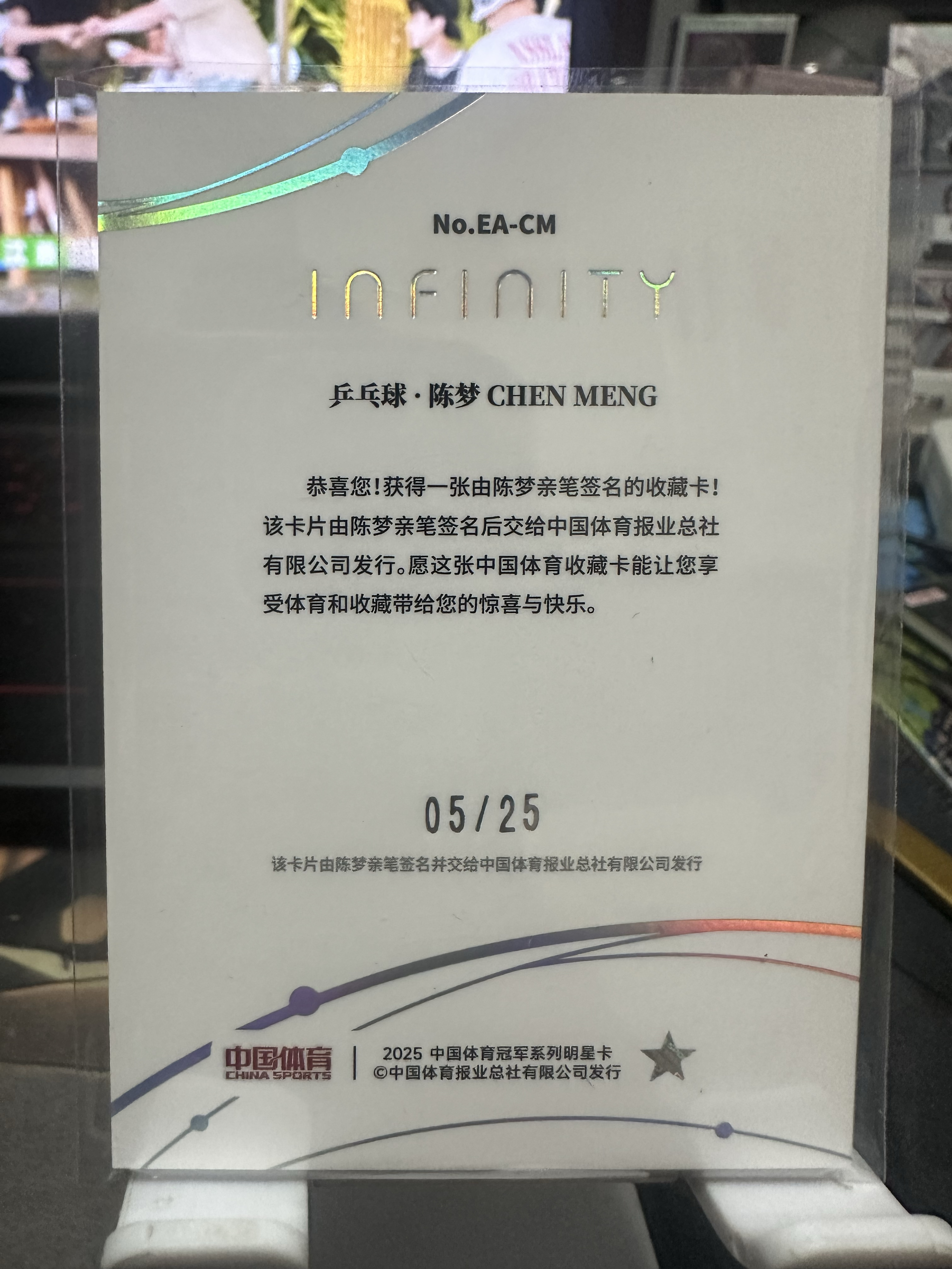 2025 奇卡 QICA 无限 冠军 中国体育 乒乓球 陈梦 5/25签字