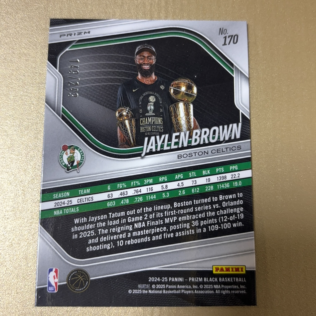 2024-25 Panini Prizm Jaylen Brown 杰伦 布朗 捧杯 prizm 249编 瀑布折 折射 凯尔特人