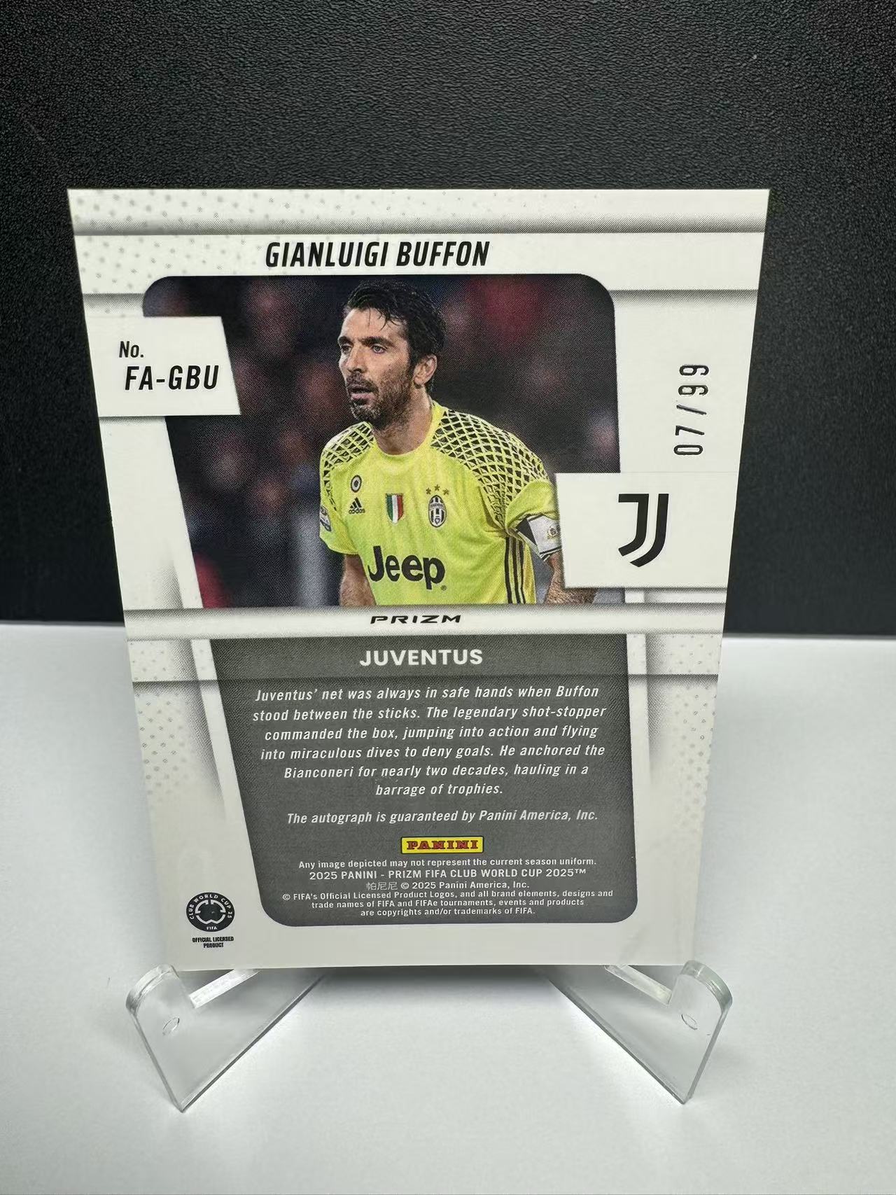 2024-25 Panini 世俱杯 Gianluigi Buffon 布冯 尤文图斯 意大利 门将 07/99编 世俱杯 折射带编签 卡品如图