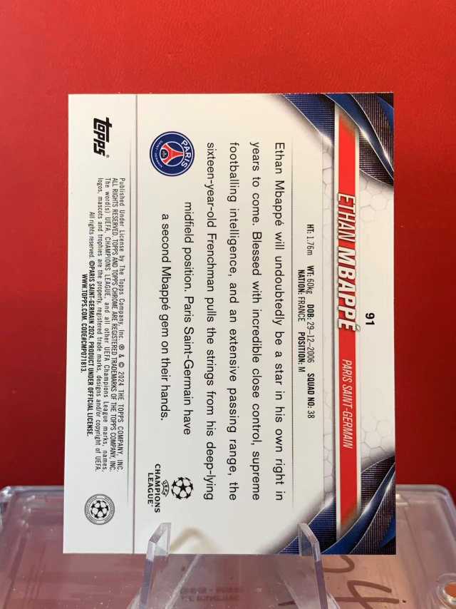 (老末精品代拍) 2024 Topps Chrome ethan mbappe RC 埃唐·姆巴佩 新秀 巴黎圣日耳曼 欧冠TC 银Hyper棱镜折 顺丰空运 免费代拍E01
