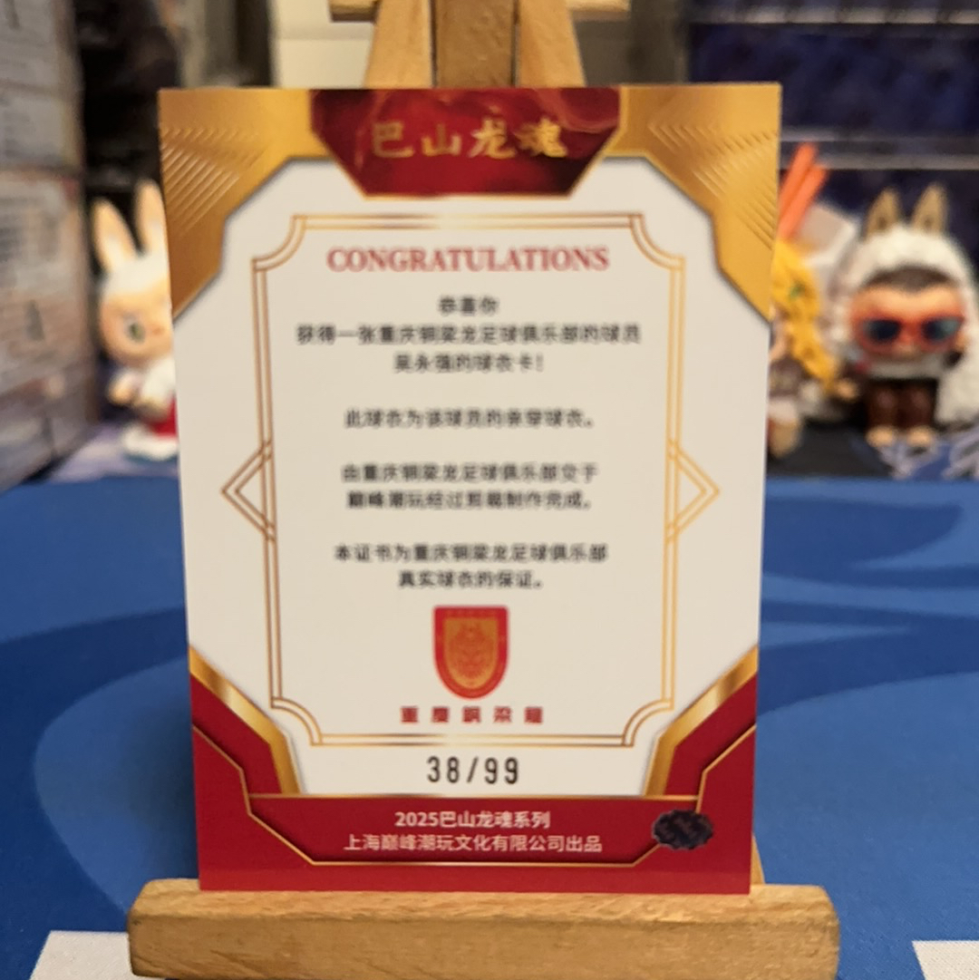 2025 巅峰潮玩 巴山龙魂 重庆队盒 吴永强 亲穿球衣 大窗物料 38/99编 收藏必备 卡