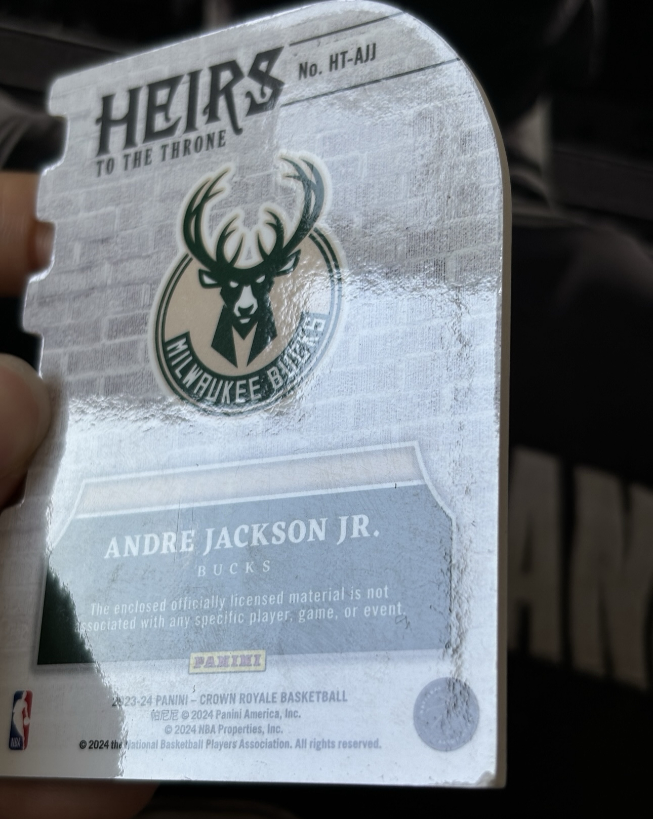 2023-24 Panini Crown Royale Andre Jackson Jr. 《快乐卡舍接寄拍》雄鹿 小安德烈 杰克逊 新秀 单色物料 皇冠系列 瑕疵见图 投资收藏必备
