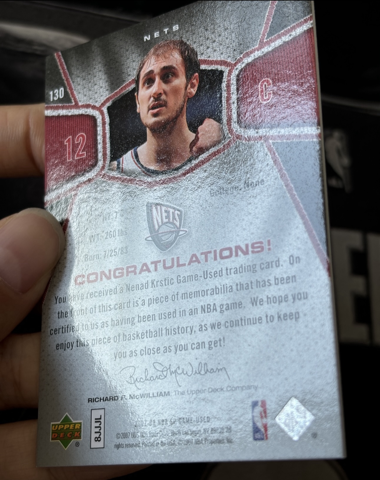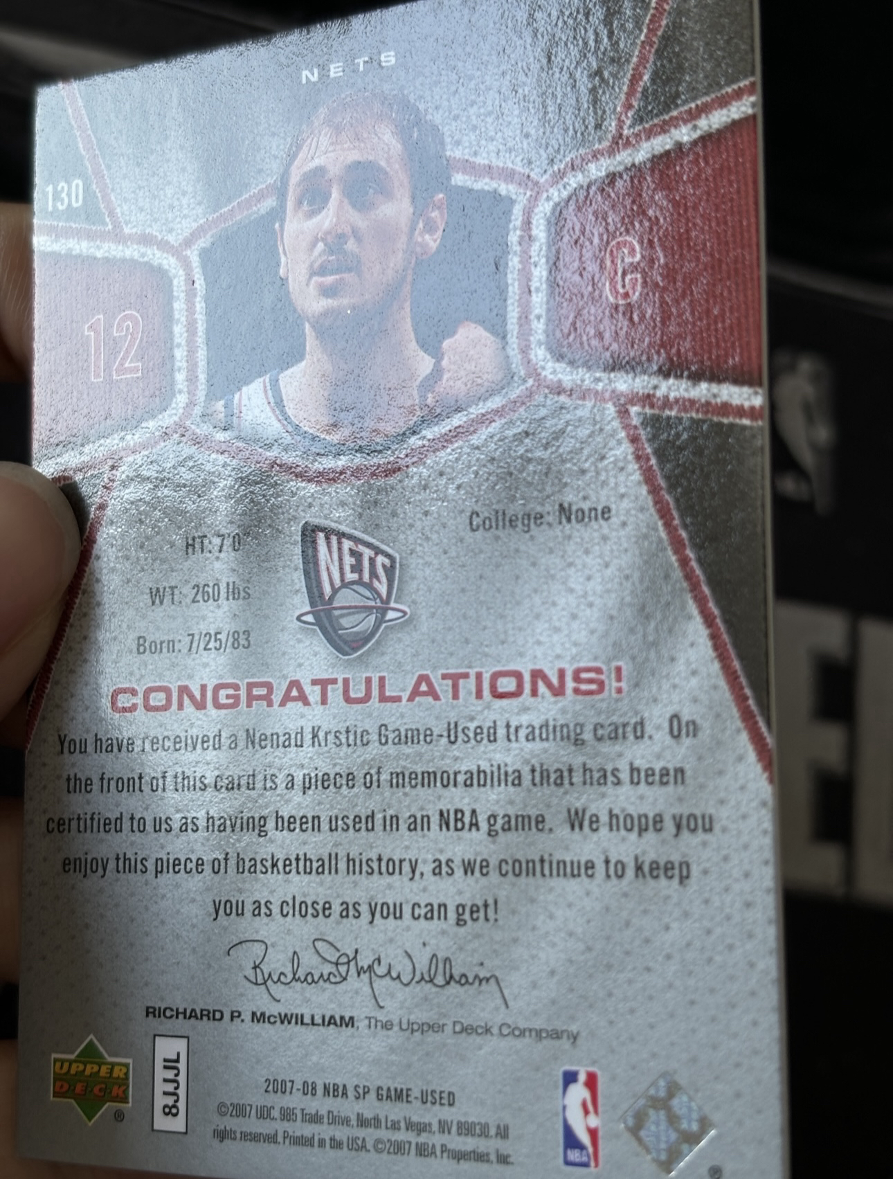 2007-08 Upper Deck SP Game Used Nenad Krstic 《快乐卡舍接寄拍》篮网 内纳德·科斯蒂奇 比赛物料 SP系列 瑕疵见图 投资收藏必备