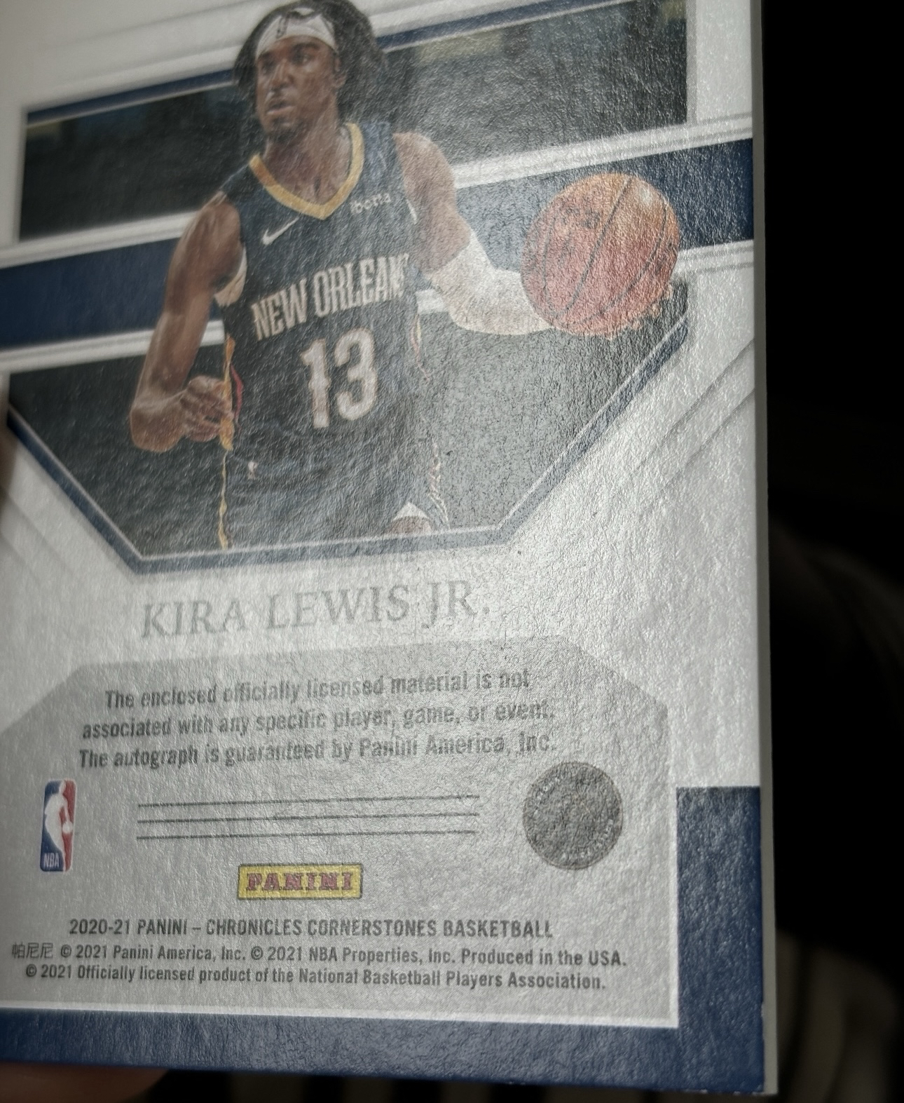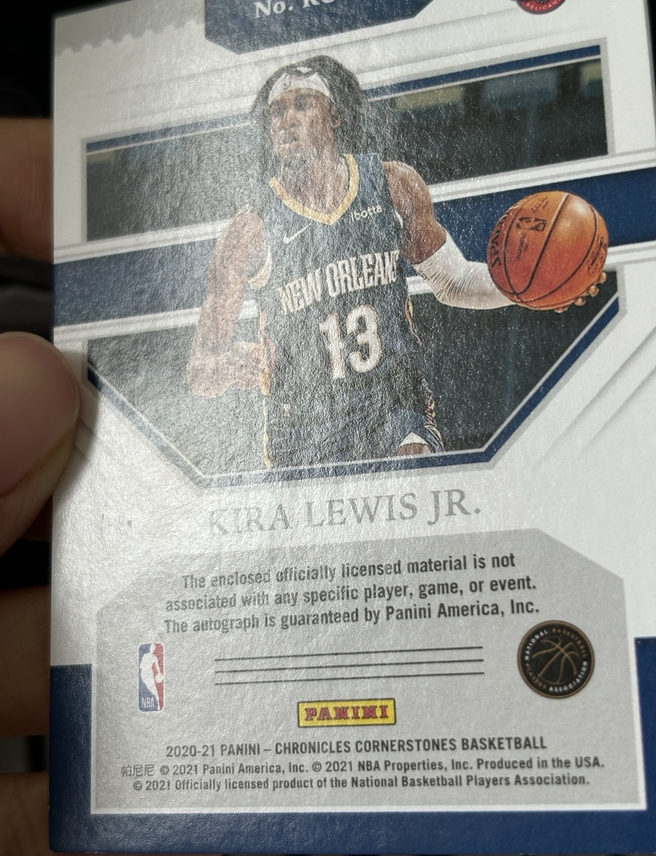 2020-21 Panini Chronicles Kira Lewis Jr. 《快乐卡舍接寄拍》鹈鹕 基拉 刘易斯 73/99编 RJA物料 签字墨迹清晰 编年史系列 瑕疵见图 投资收藏必备