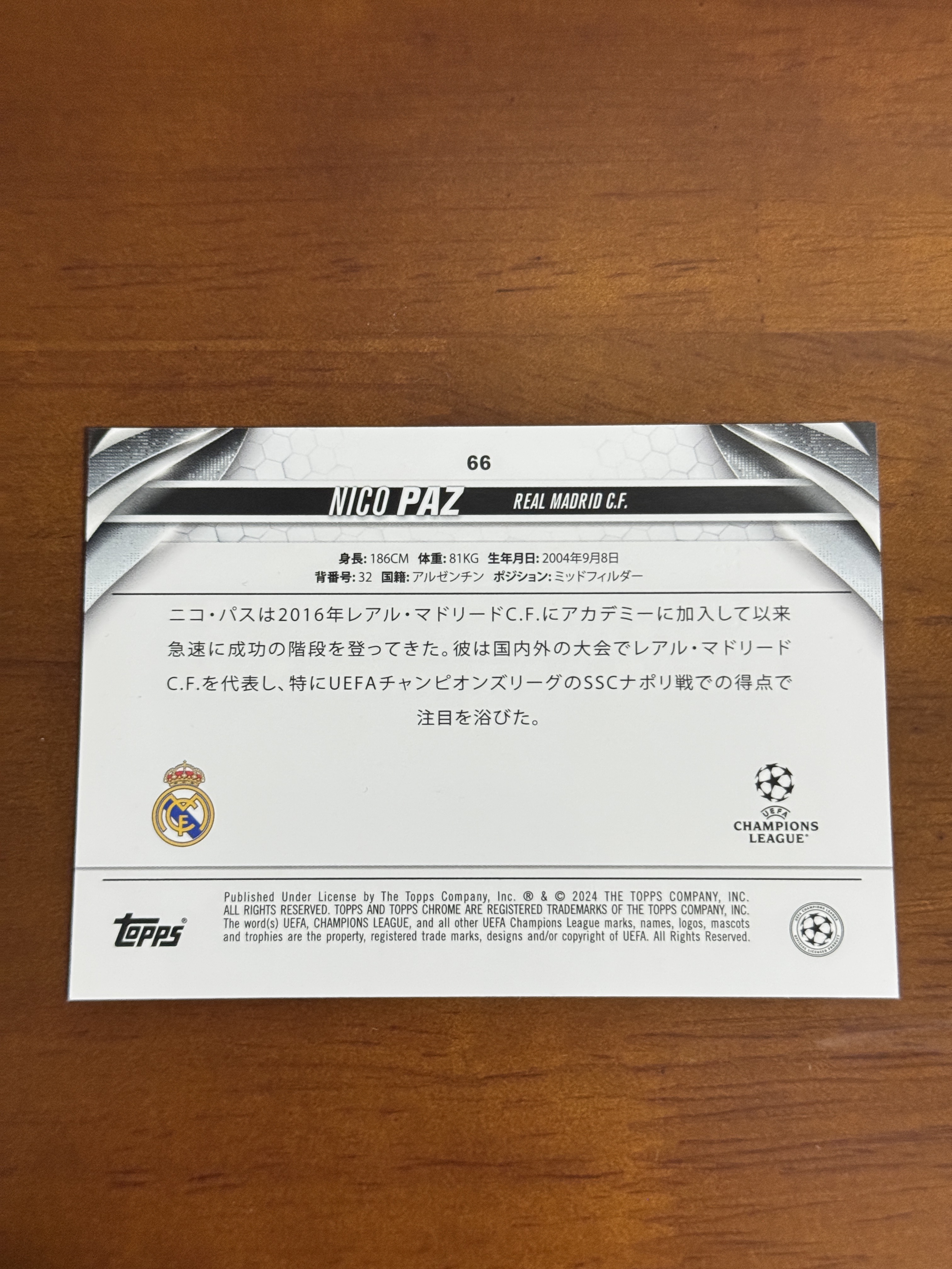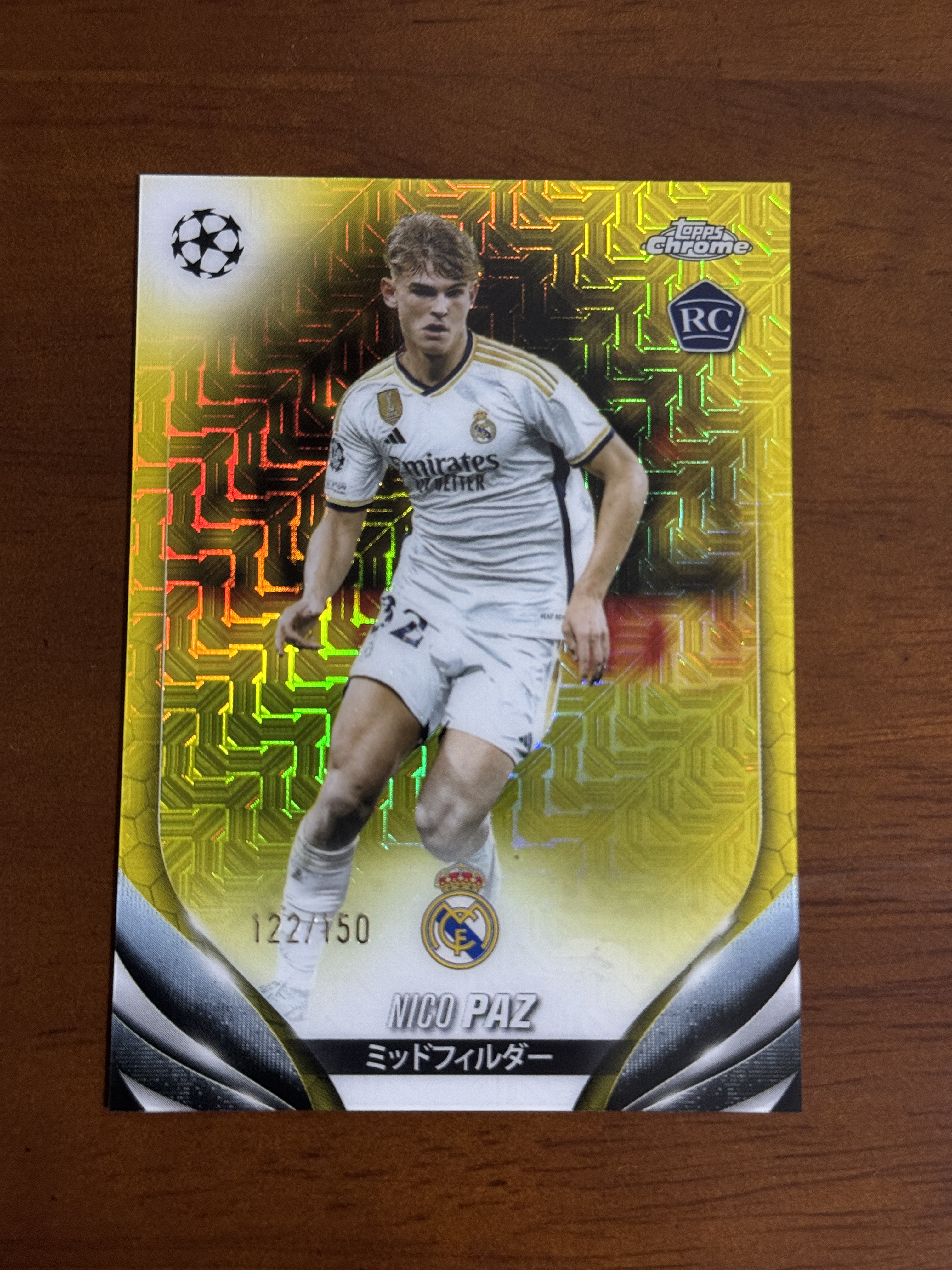 2023-24 Topps Chrome Nico Paz 尼科 帕兹 帕斯 RC 新秀 150编 黄折 黄MOJO折 皇马 皇家马德里 科莫 过人王 阿根廷 潜力新星 欧冠 樱花版
