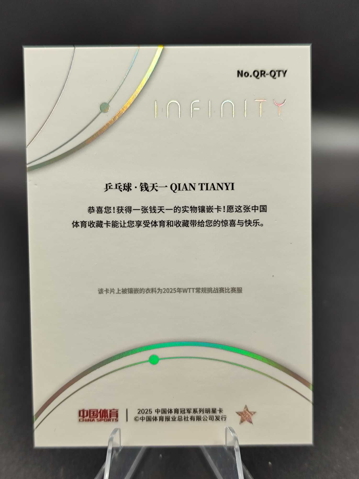 2025 奇卡 QICA 中国体育 无限 钱天一 【小桃气拍卖】中国体育 无限 钱天一 乒乓球 物料切割 11/25编 镭射银 卡品如图 V530