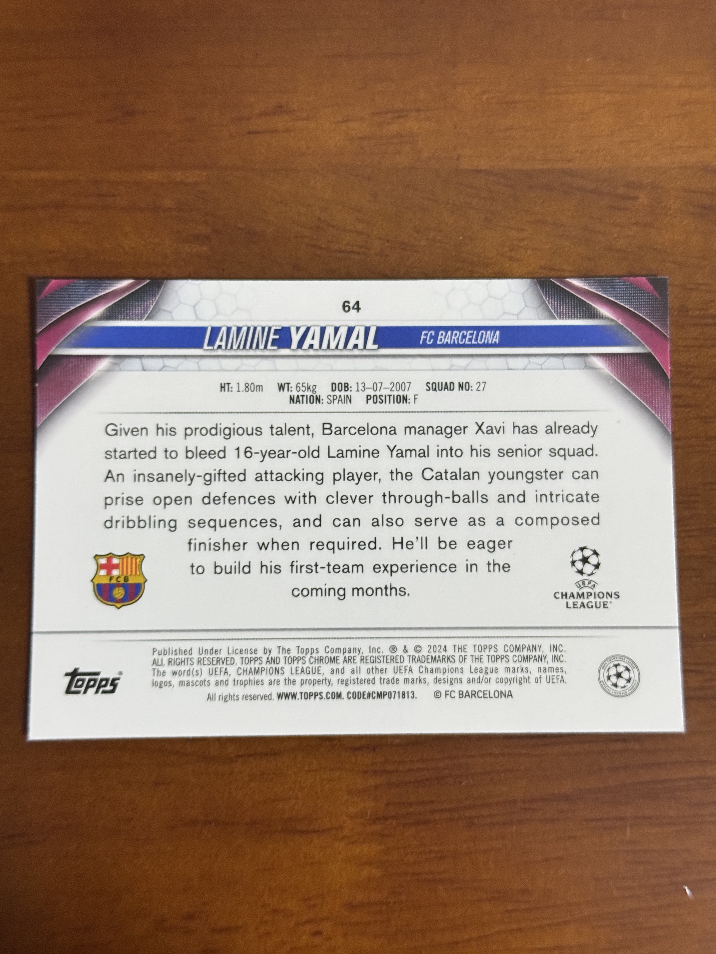 2023-24 Topps Chrome Lamine Yamal 西班牙 巴塞罗那 巴萨 新秀 拉明亚马尔 新秀 TC base 收藏必备