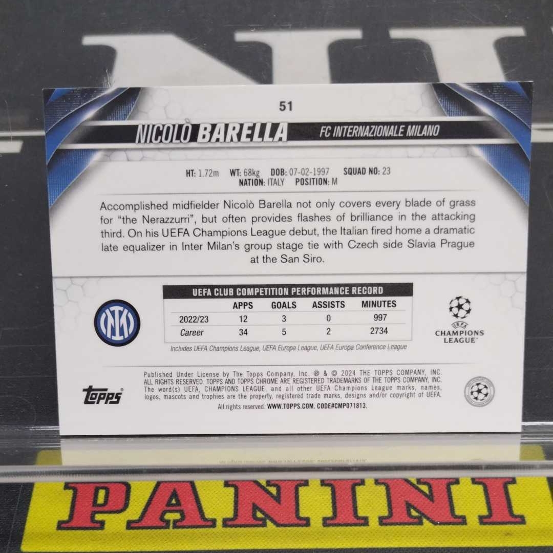 2024 Topps Chrome NICOLO BARELLA 【伯纳乌代卖】欧冠 尼克洛 巴雷拉 195/299 带编 紫碎点折 折射 特卡 意甲 国米 收藏必备 微瑕(JO)