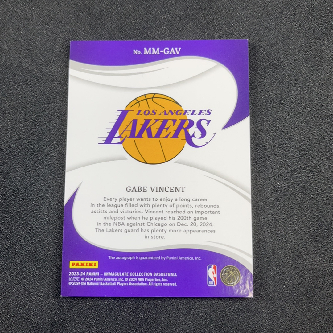 2023-24 Panini Immaculate Gabe Vincent 盖布 文森特 爱咪咪 湖人 卡签 5/99编 签字 高端系列 湖人外线得分点 卡品如图