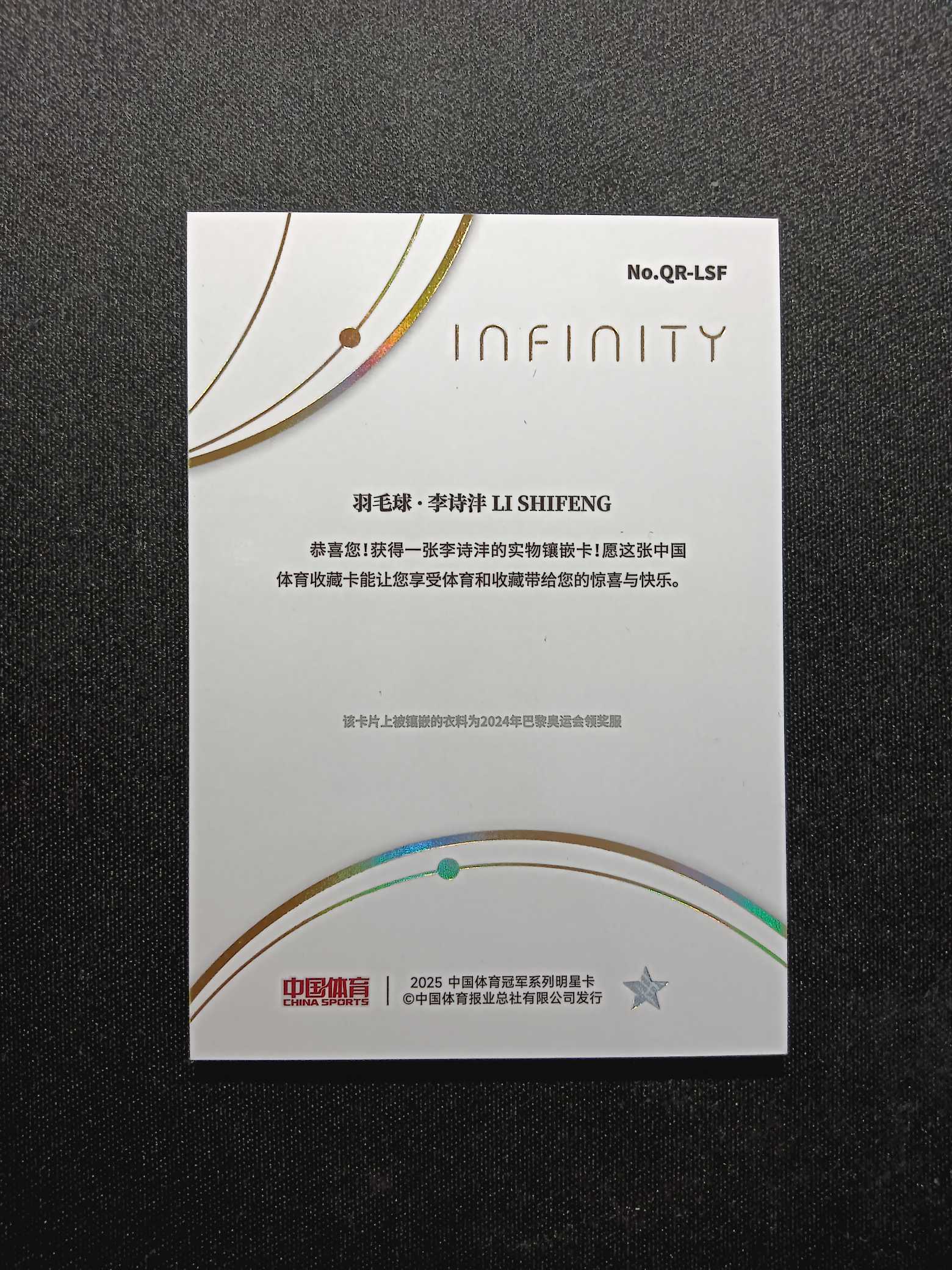 2025 奇卡 QICA 中国体育 无限 李诗沣 Infinity 羽毛球 06/10编 低编 金平行 2024年巴黎奥运会领奖服 实物镶嵌 亲穿物料切割 量子时空 卡品如图