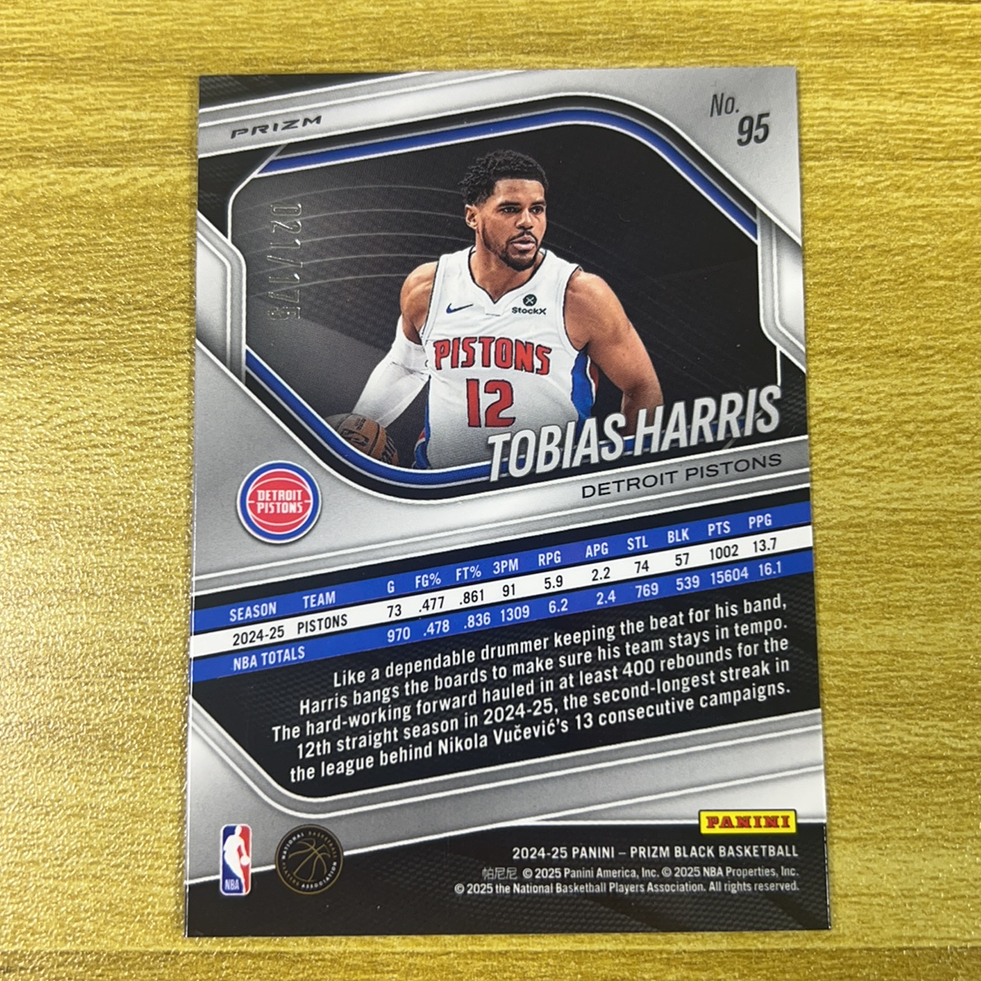 2024-25 Panini Prizm black Tobias Harris 活塞 托比亚斯 哈里斯 175编 白折 卡品如图 牛