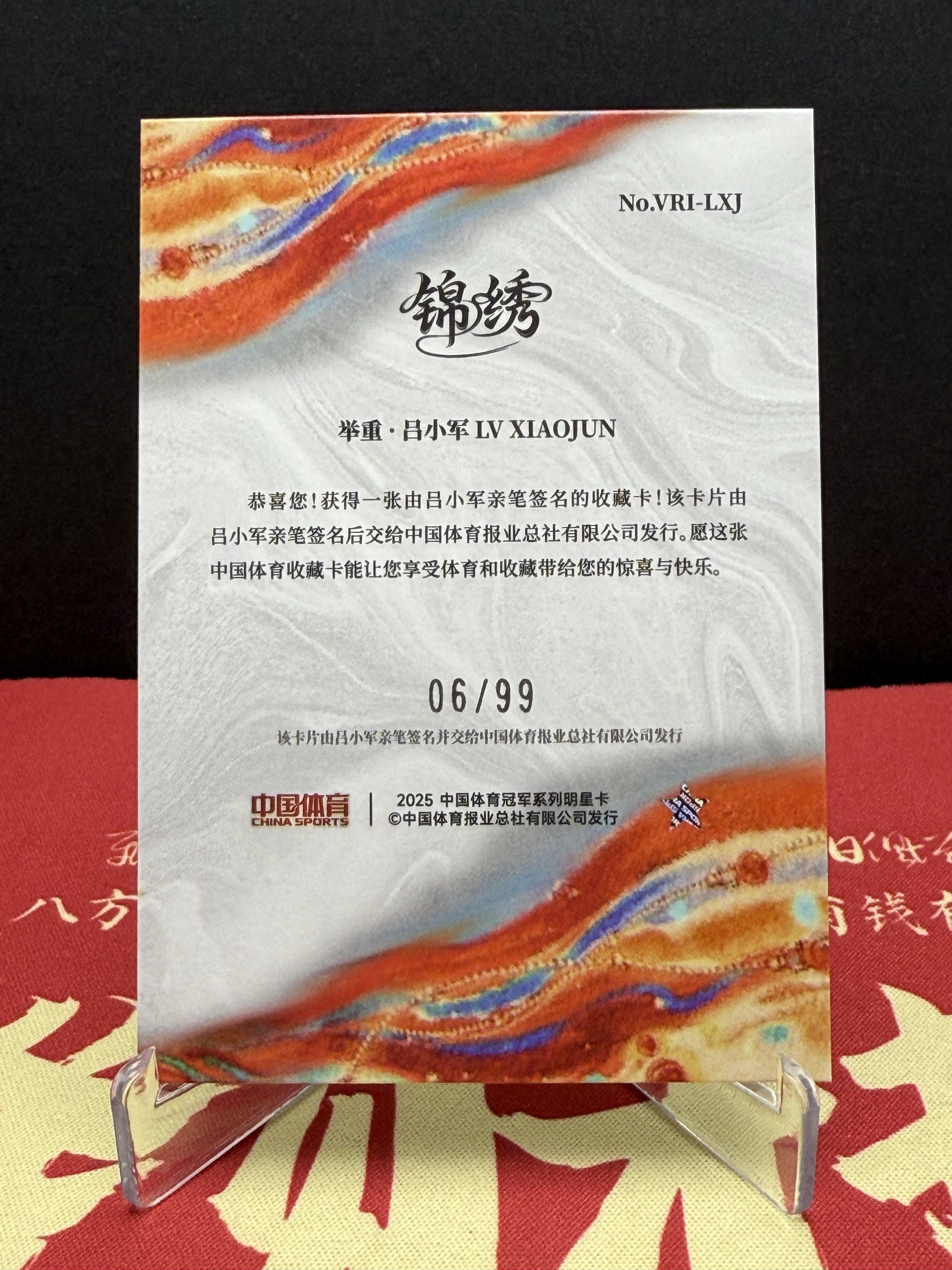 2025 奇卡 QICA 冠军 吕小军 2025 中国体育冠军 锦绣系列 银折 铭刻签字06/99编 奥运冠军 军神 三连冠奥运冠军 收藏必备 蒋总