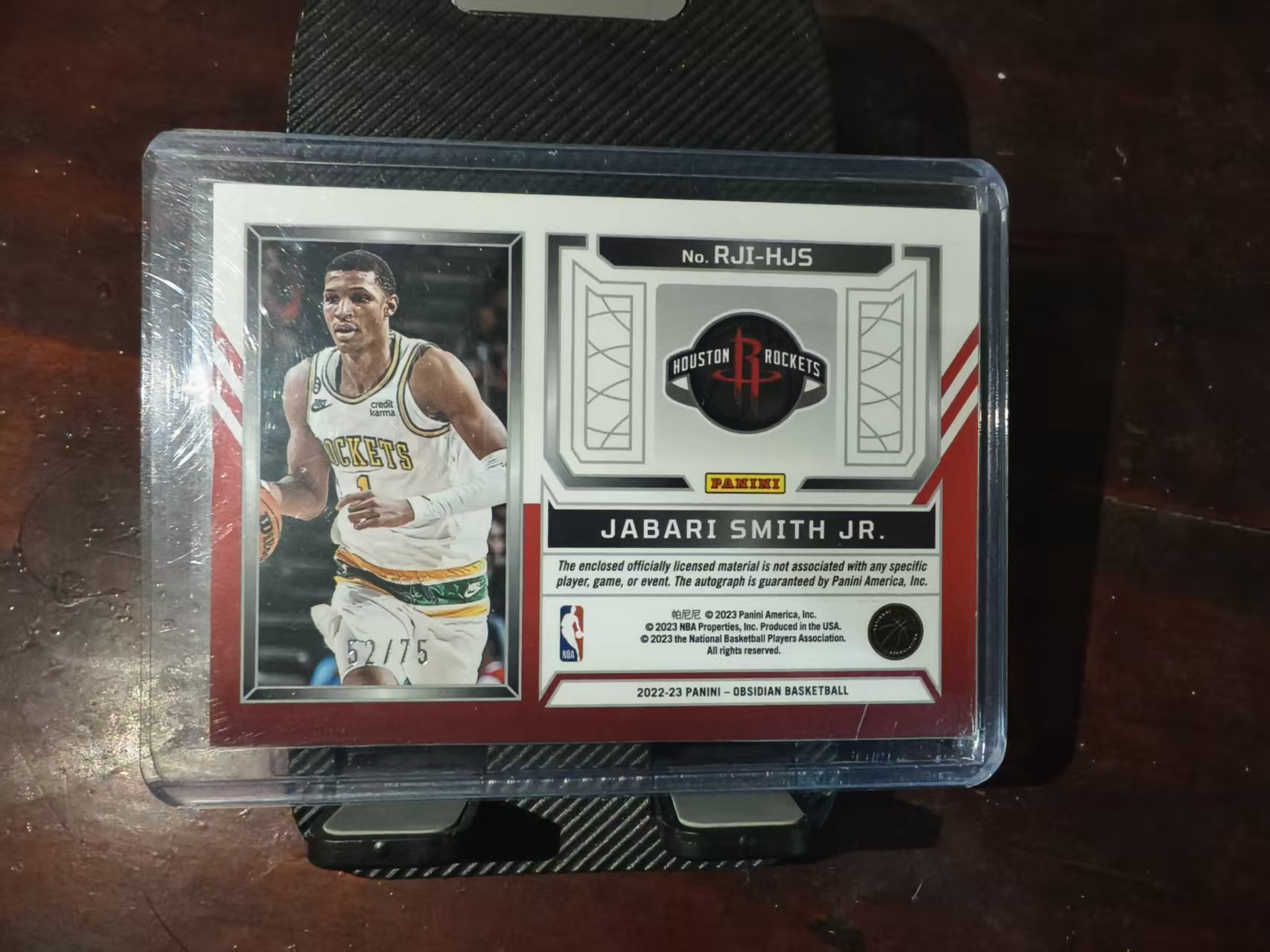 2022-23 Panini Obsidian Jabari Smith Jr. RC 黑曜石 火箭 小贾巴里史密斯 新秀RC 双窗 球衣物料 签字 紫折 52/75编 收藏必备