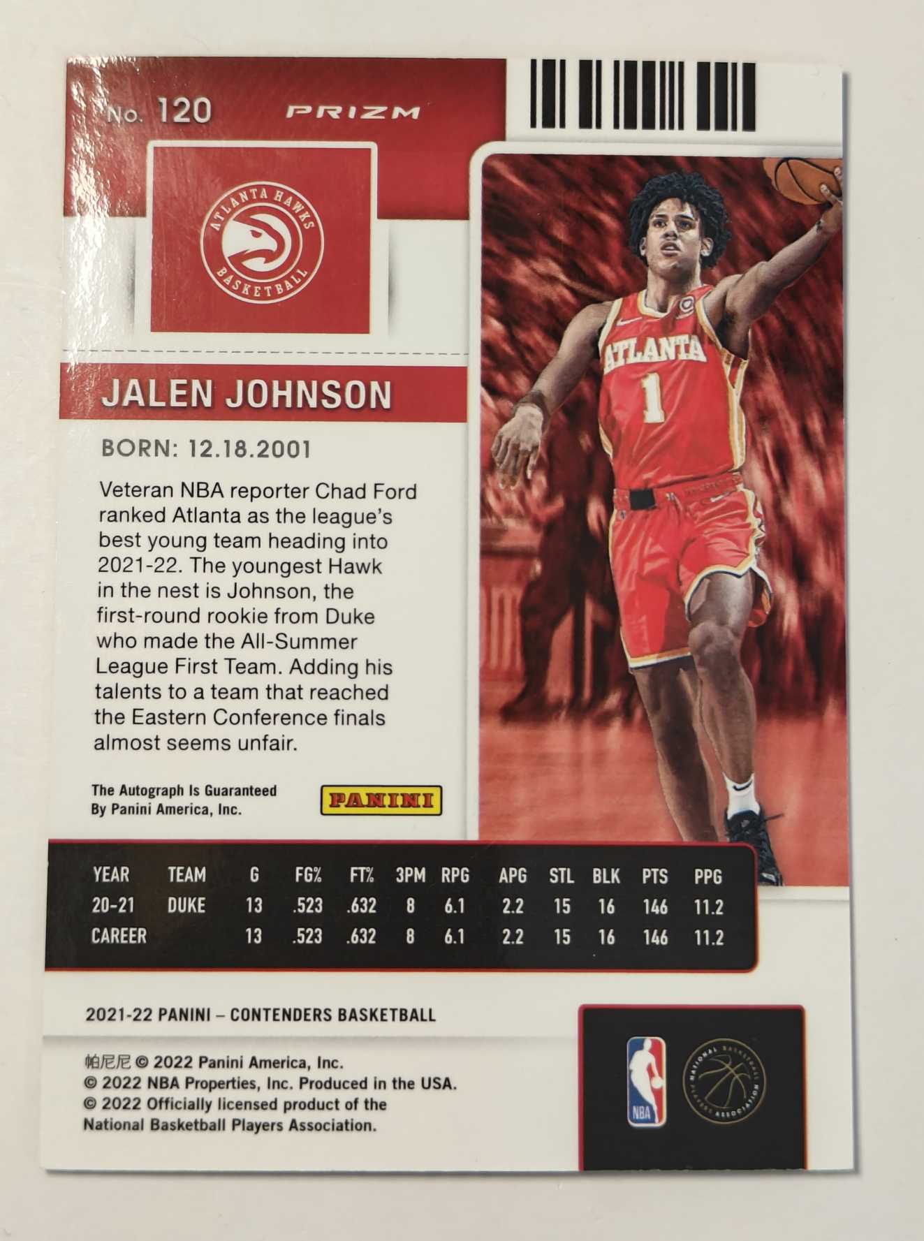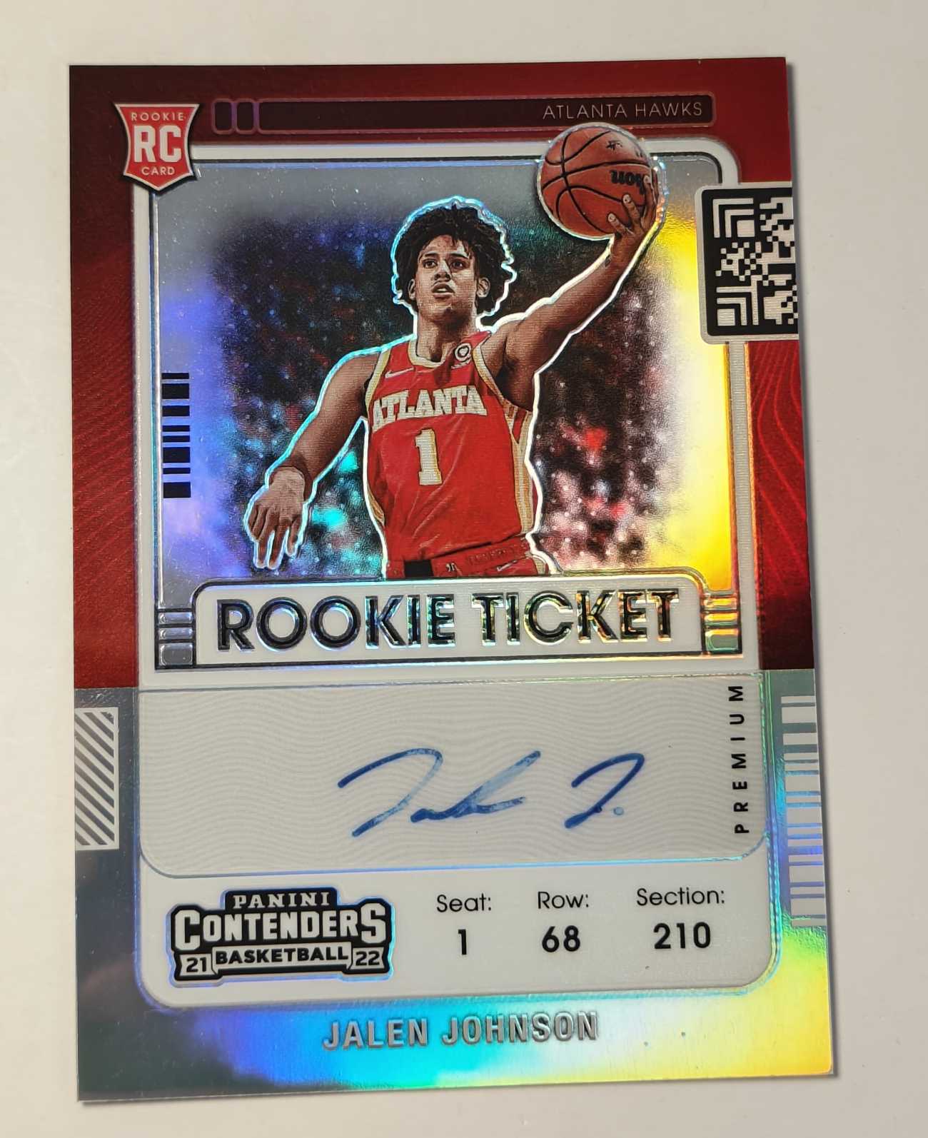 2021-22 Panini Contenders Jalen Johnson RC 【hw代卖】老鹰新秀 杰伦 约翰逊 JJ 新鹰王 球票系列 卡签 签字 银折 折射 特雷杨队友 品相墨迹如图