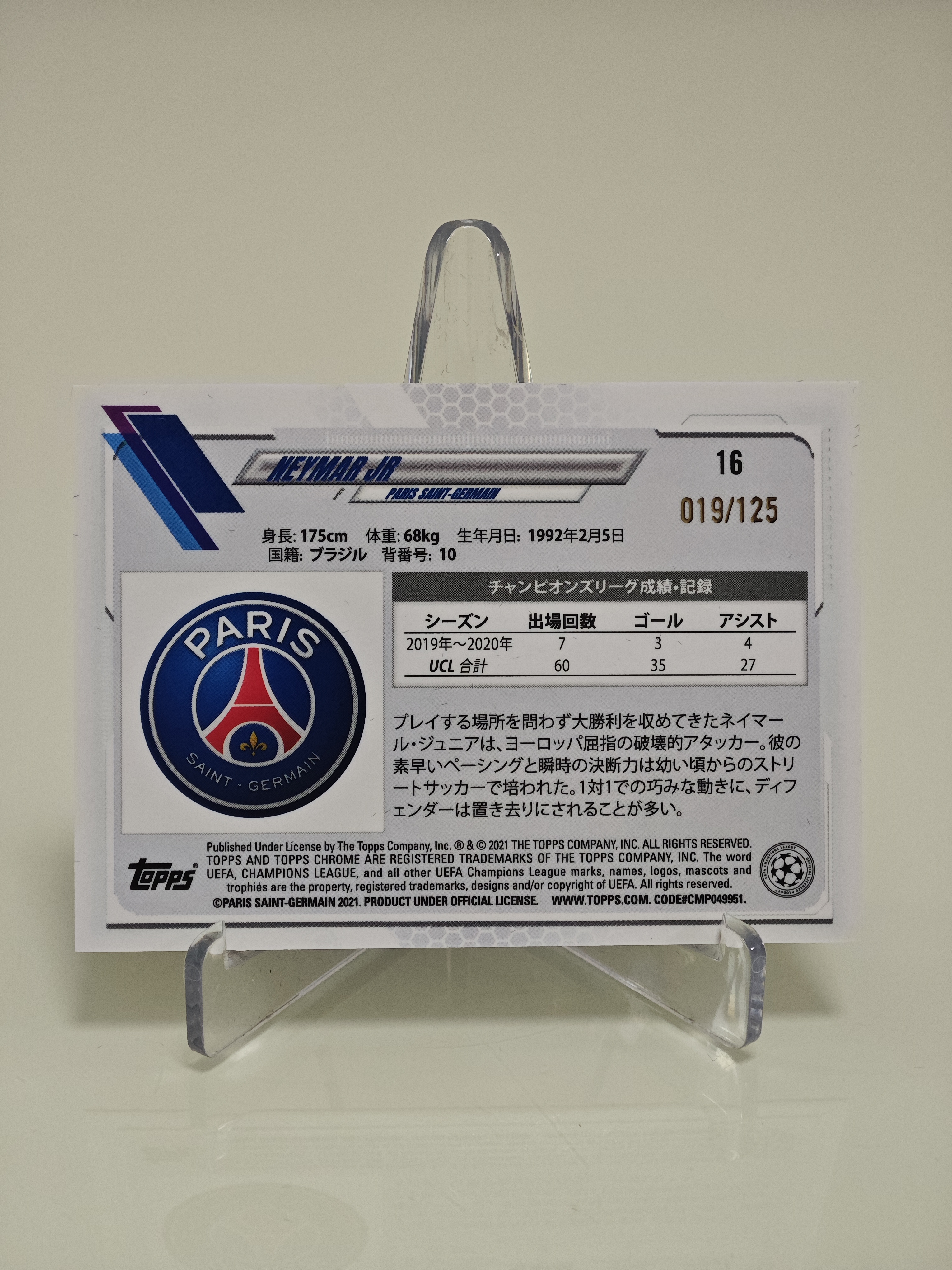 2021 Topps Chrome Neymar Jr. 内马尔 125编 巴黎圣日耳曼 PSG 巴西 BRAZIL MOJO折 日版 实卡精美!