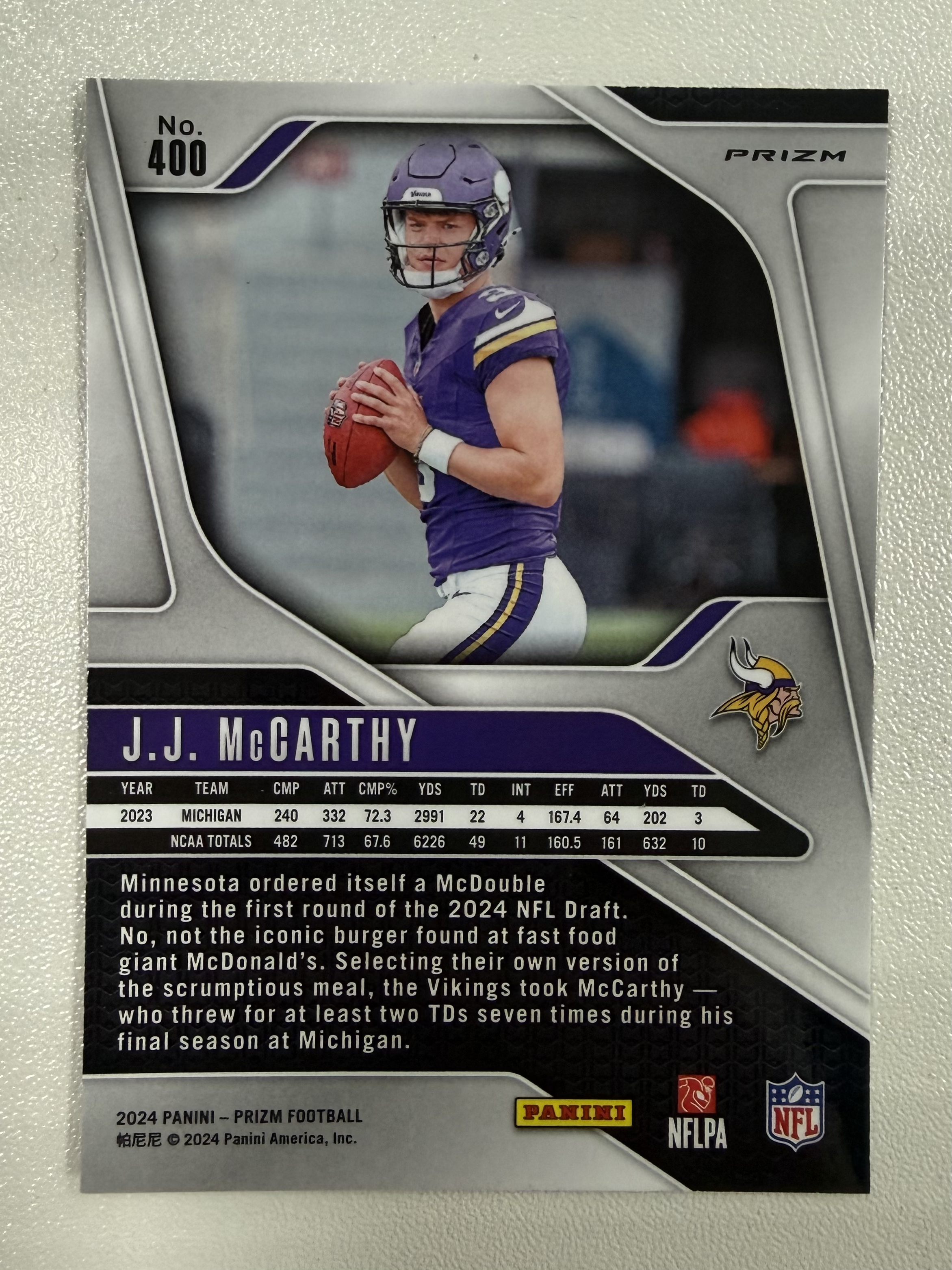 2024 Panini Prizm J.J. McCarthy RC 橄榄球 pz 维京人 六小只 JJ 麦卡锡 红碎点 红碎闪 红折 积分包 补偿包 卡品如图