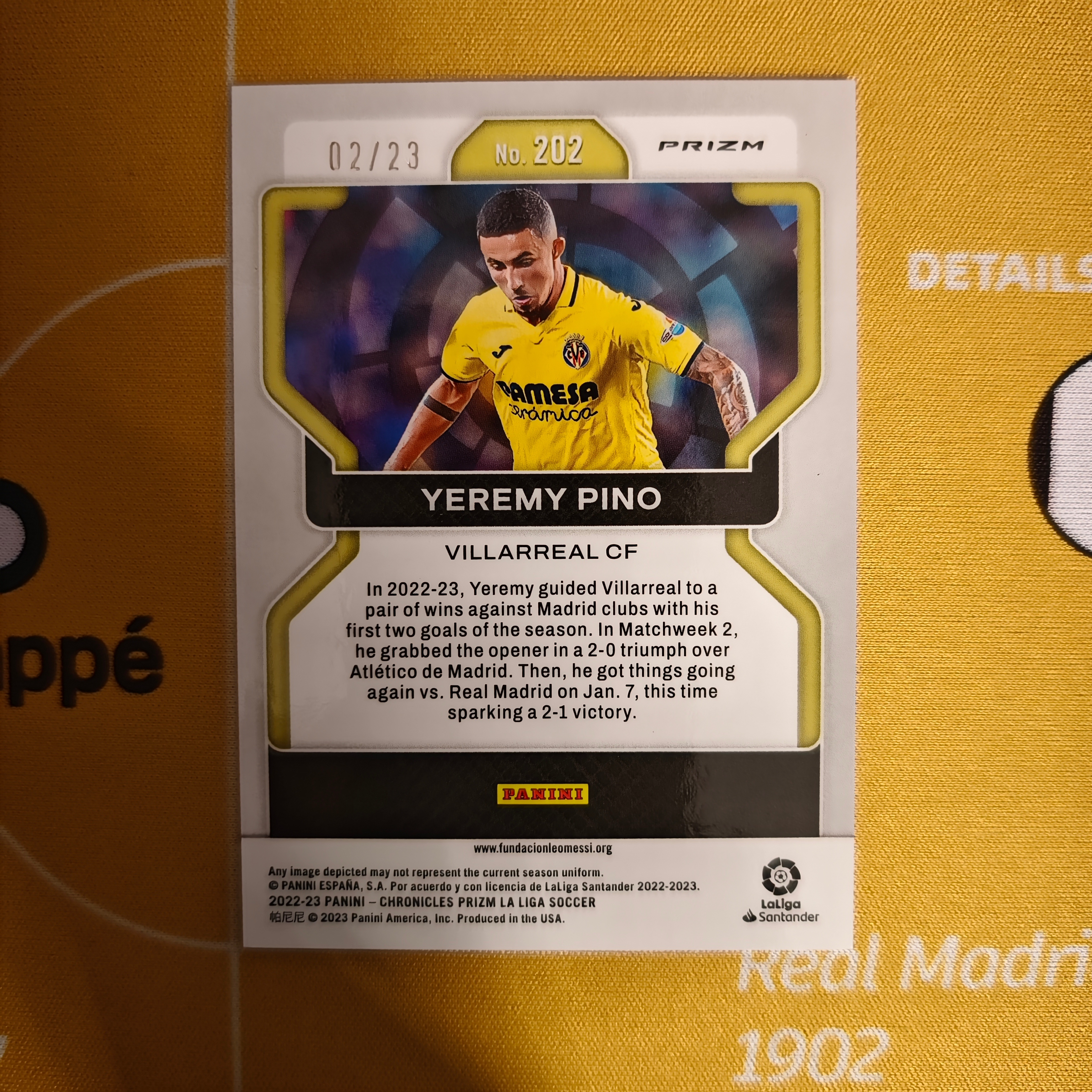 2022-23 Panini Prizm Yéremy Pino 耶雷米 皮诺 水晶宫 比利亚雷亚尔 西班牙 02/23橙碎冰 登录英超 表现亮眼 未来可期 通行卡品