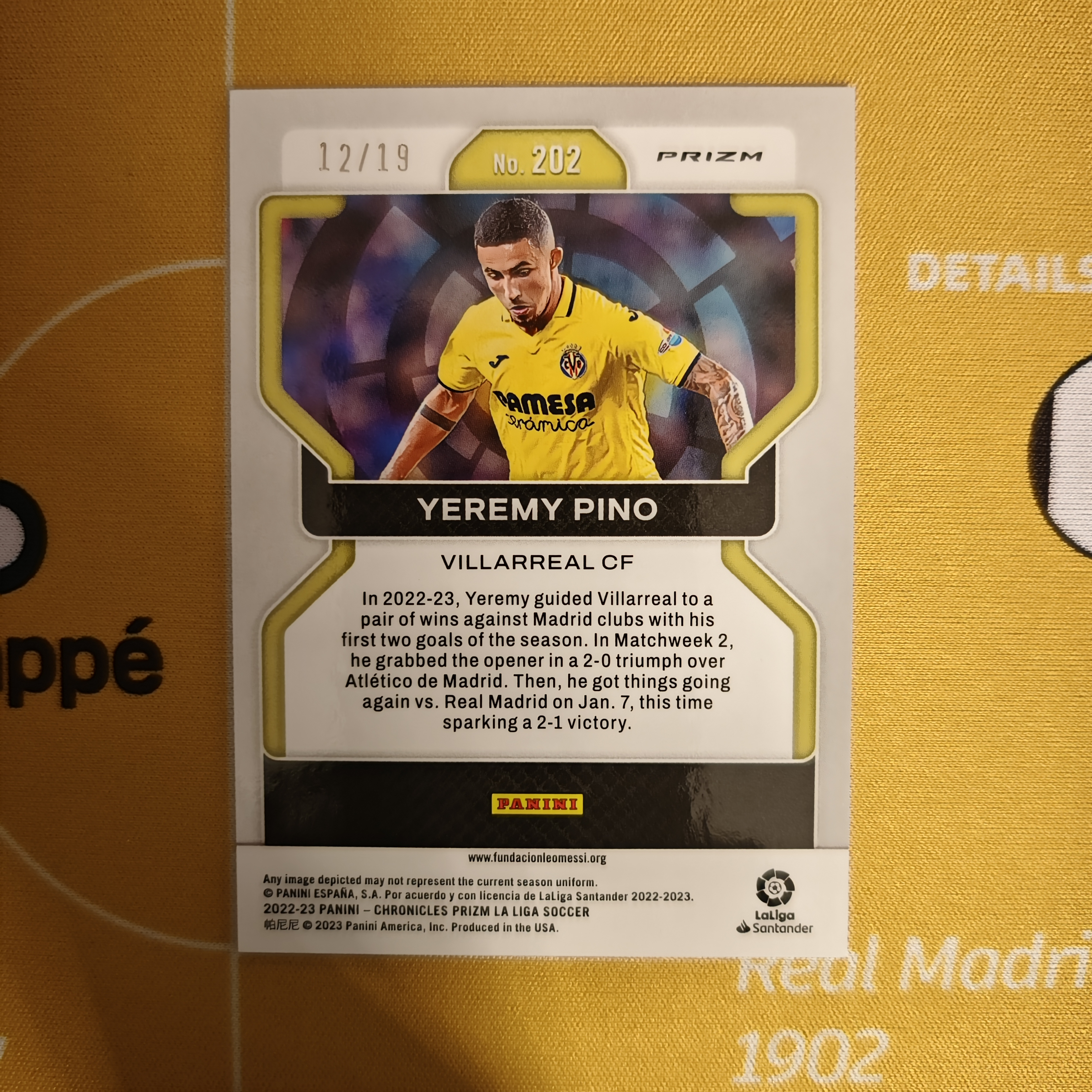 2022-23 Panini Prizm Yéremy Pino 耶雷米 皮诺 水晶宫 比利亚雷亚尔 西班牙 12/19粉波纹折 登录英超 表现亮眼 未来可期 通行卡品