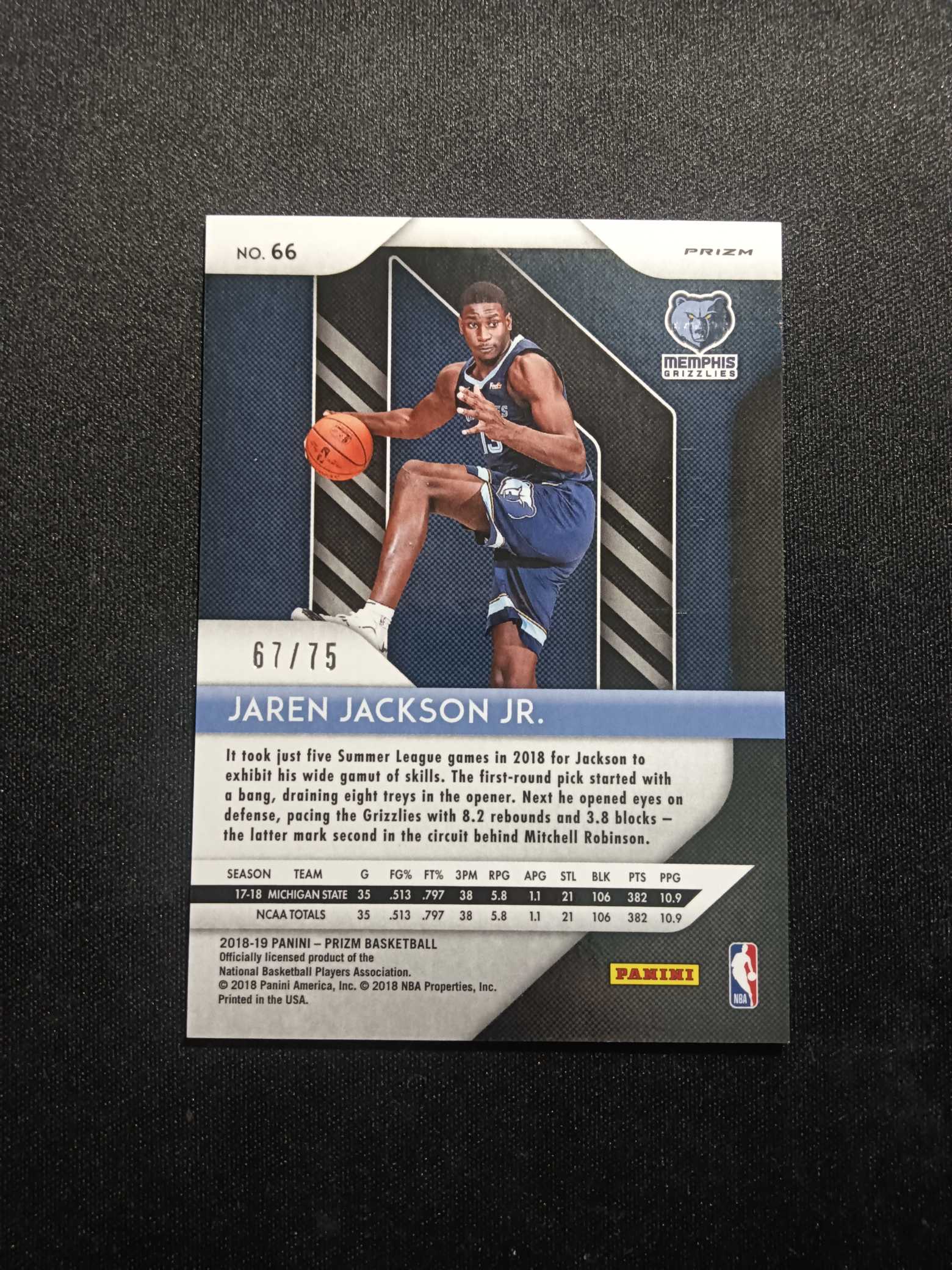 2018-19 Panini Prizm Jaren Jackson Jr. RC PZ 灰熊 小贾伦 杰克逊 3J 新秀 67/75编 粉泡泡折 粉折 折射 非签字 DPOY 莫兰特波普队友 卡品如图