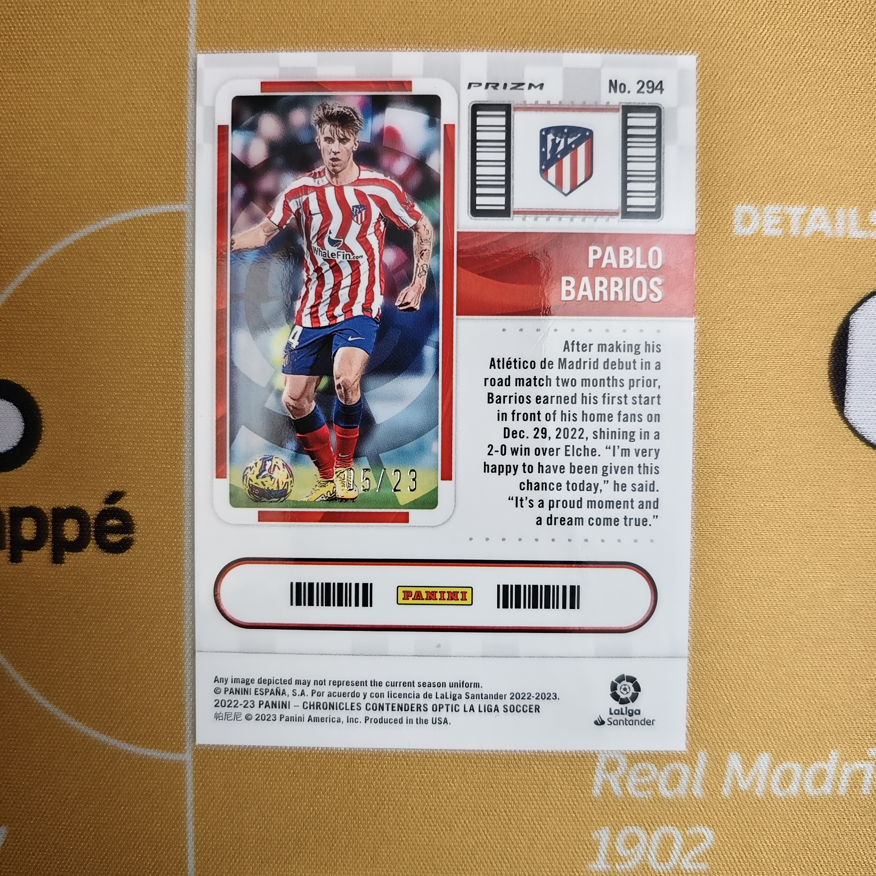 2022-23 Panini Contenders Optic Pablo Barrios RC 巴里奥斯 新秀 马德里竞技 马竞 05/23橙碎冰 球票 中场大核 未来领袖 专收必备 通行卡品