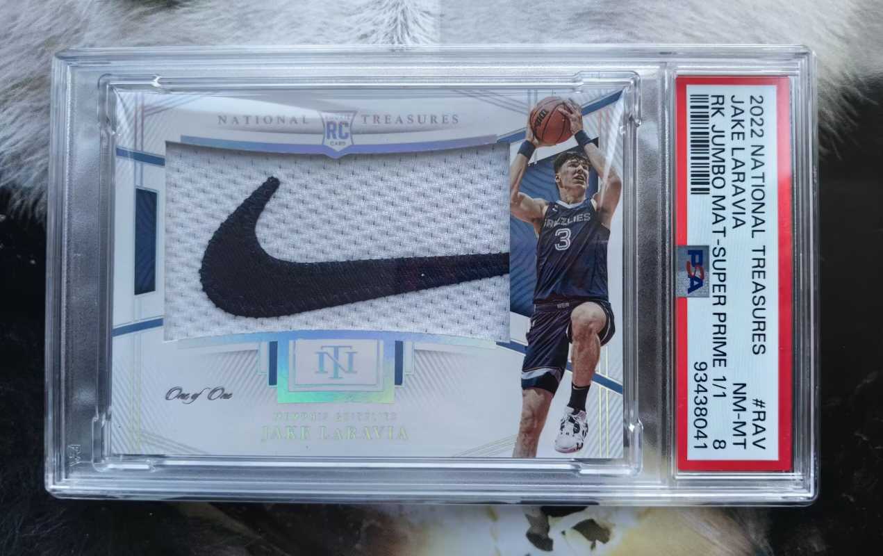 2022-23 Panini National Treasures Jake LaRavia RC 杰克.拉拉维亚 新秀 国宝 大勾子 nike切割 1/1编 psa8 灰熊队 队友老詹 东契奇