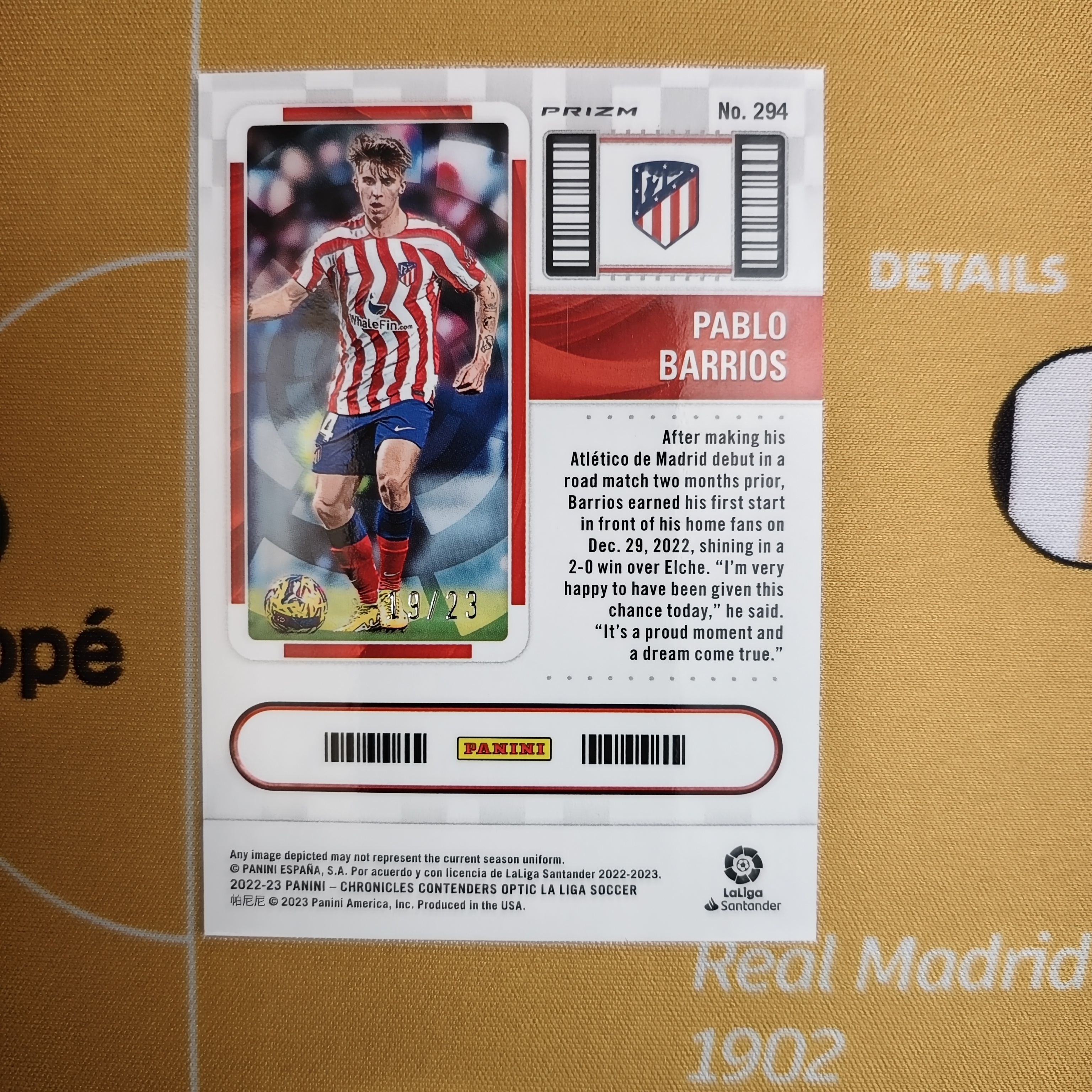 2022-23 Panini Contenders Optic Pablo Barrios RC 巴里奥斯 新秀 马德里竞技 马竞 19/23橙碎冰 球票 中场大核 未来领袖 专收必备 通行卡品