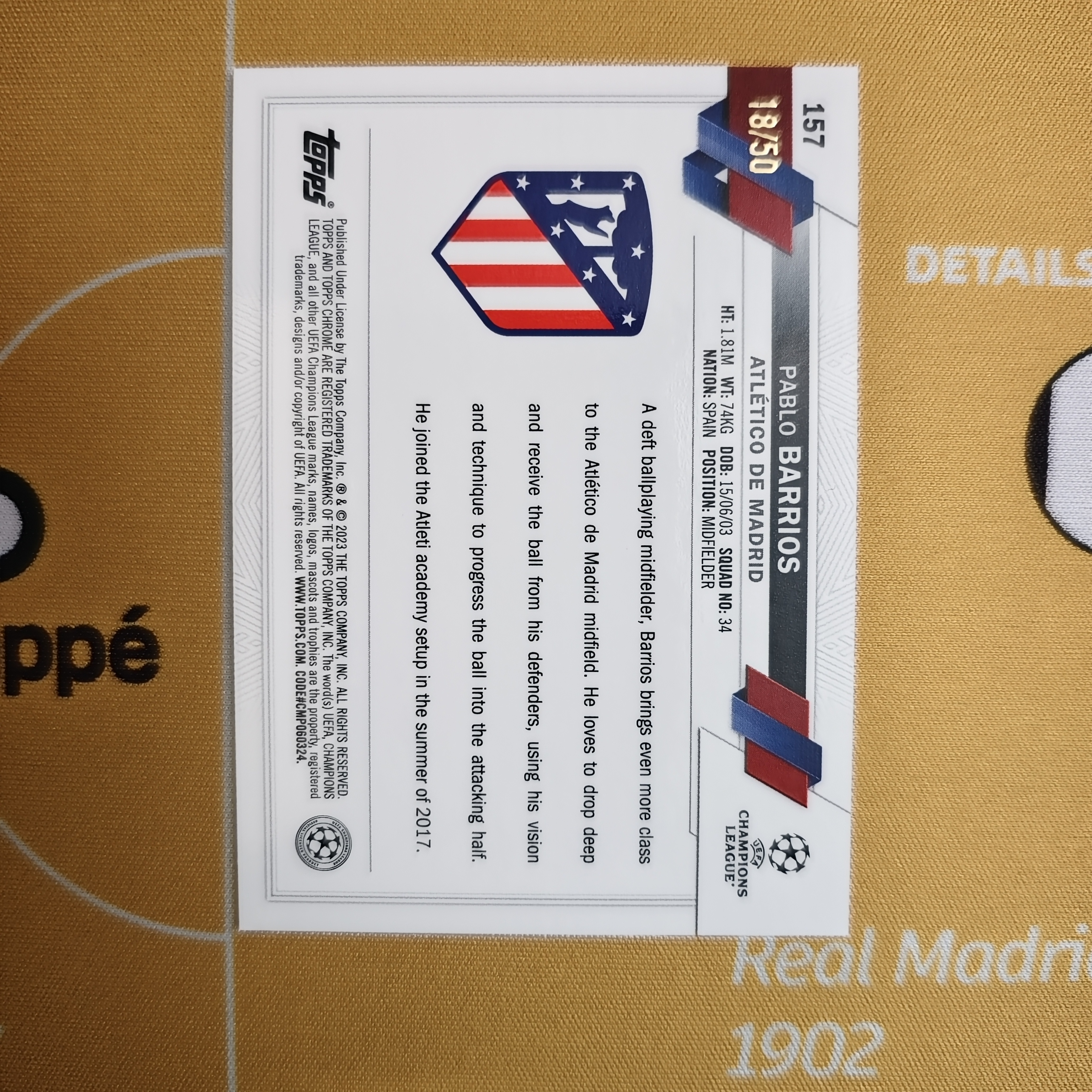 2023 Topps Chrome Pablo Barrios RC 巴里奥斯 新秀 马德里竞技 马竞 18/50橙碎冰折 中场大核 未来领袖 专收必备 通行卡品