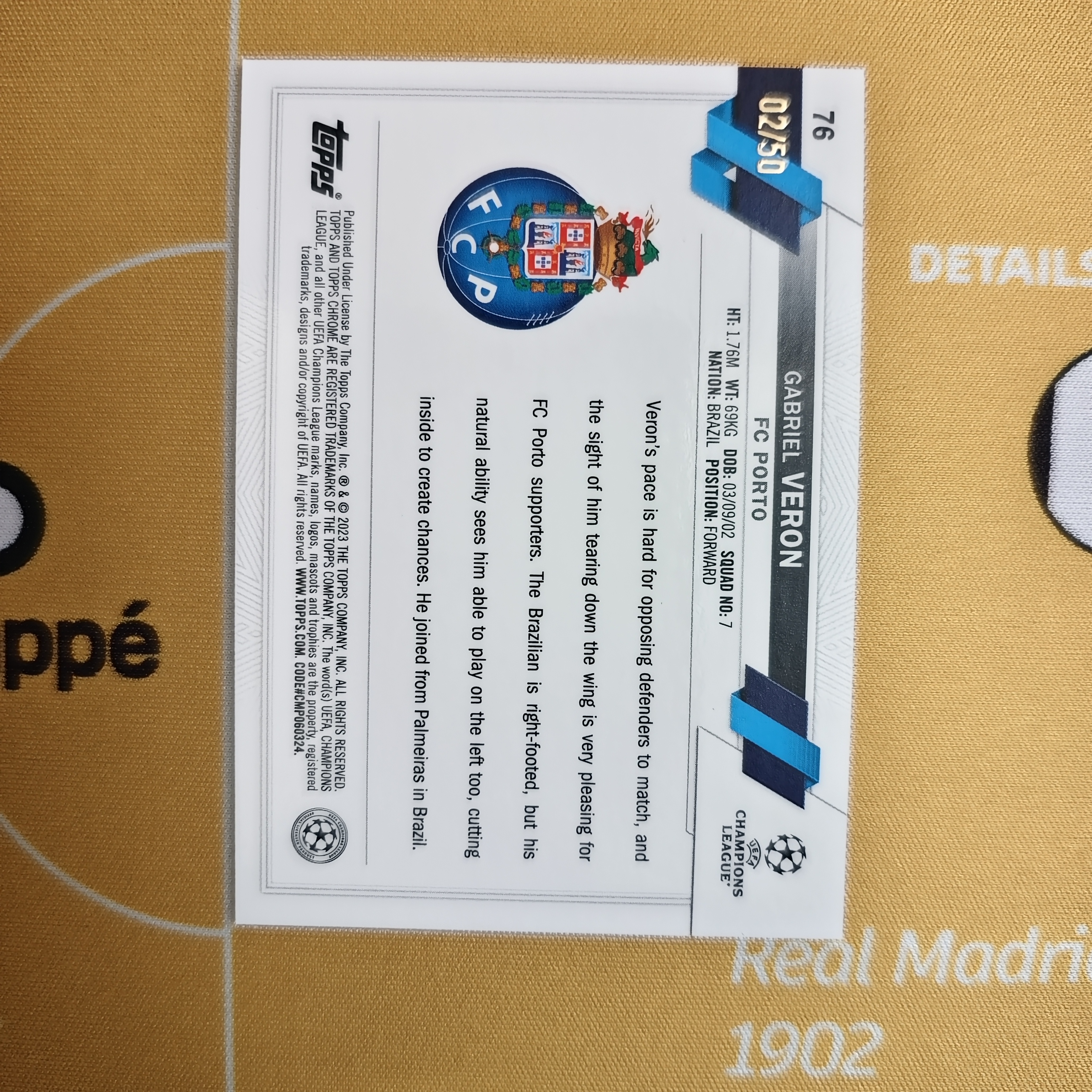 2023 Topps Chrome Gabriel Veron RC 加布里埃尔 韦隆 贝隆 新秀 波尔图 尤文图德 02/50橙碎冰折 专收必备 通行卡品