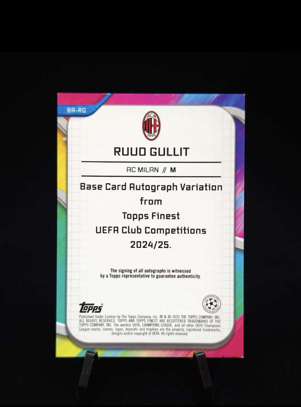 2024-25 Topps Finest Ruud Gullit 欧战 AC米兰 古力特 古利特 签字 签名 粉折 75编 收藏必备