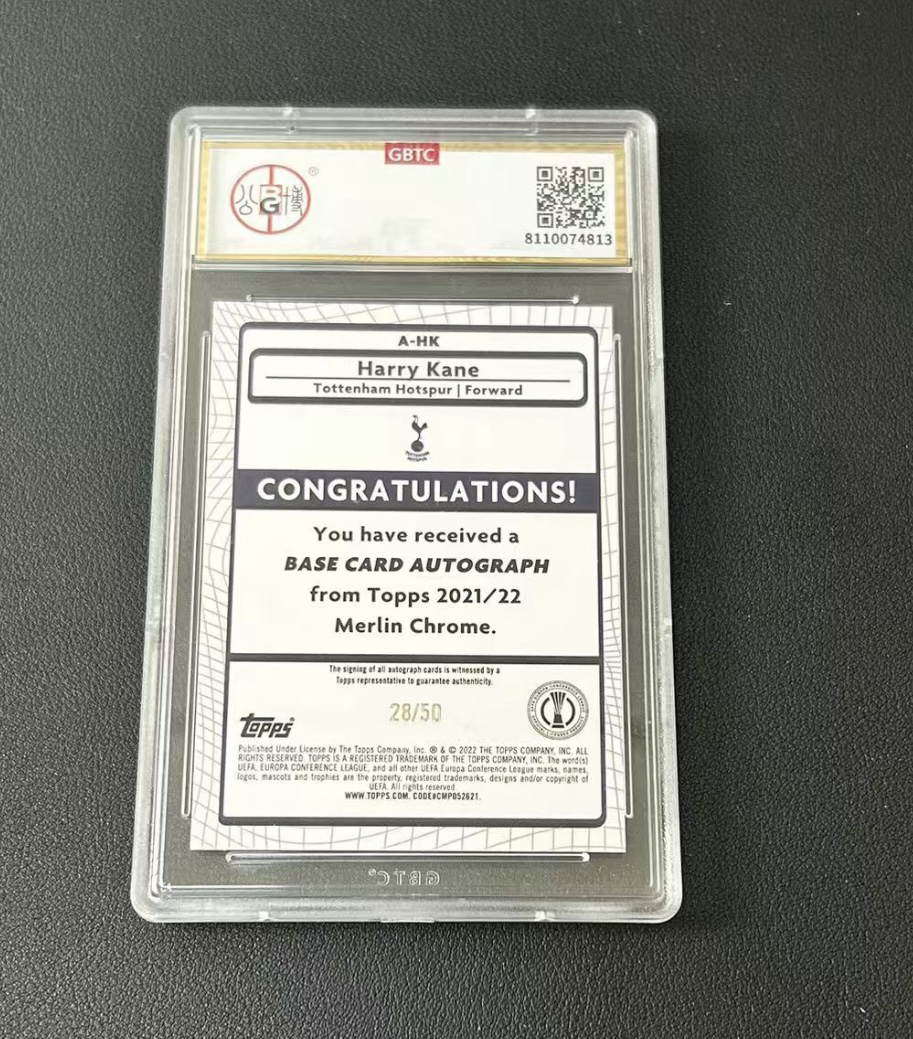 2022-23 Topps Merlin chrome Harry Kane 欧冠 梅林 哈里 凯恩 热刺 50编 金折 签字 拜仁慕尼黑 热刺 英格兰 莱斯特城 公博10分 收藏必备
