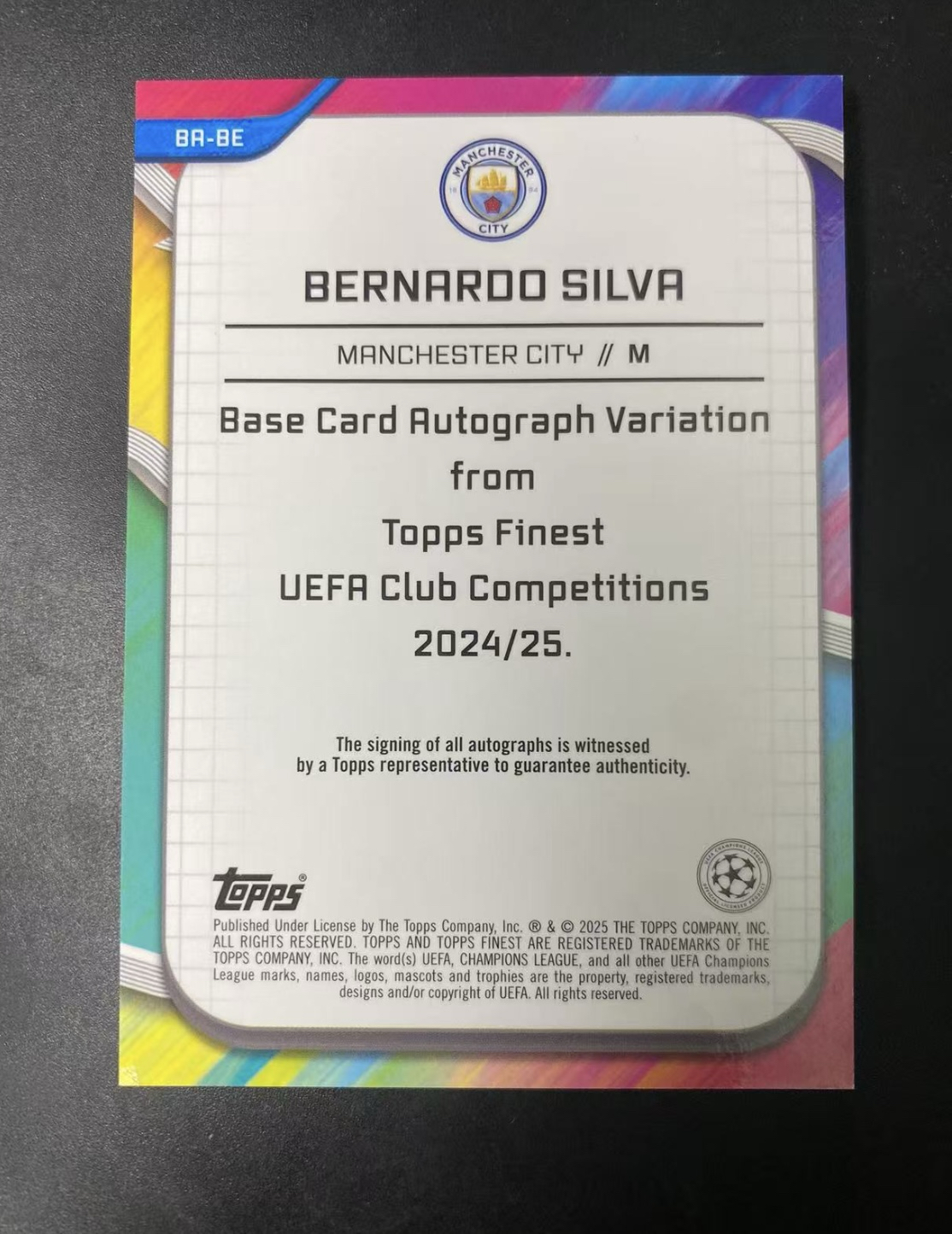 2024-25 Topps Finest Bernardo Silva 曼城 B席 贝尔纳多 席尔瓦 299编 紫折 折射 签字 收藏必备