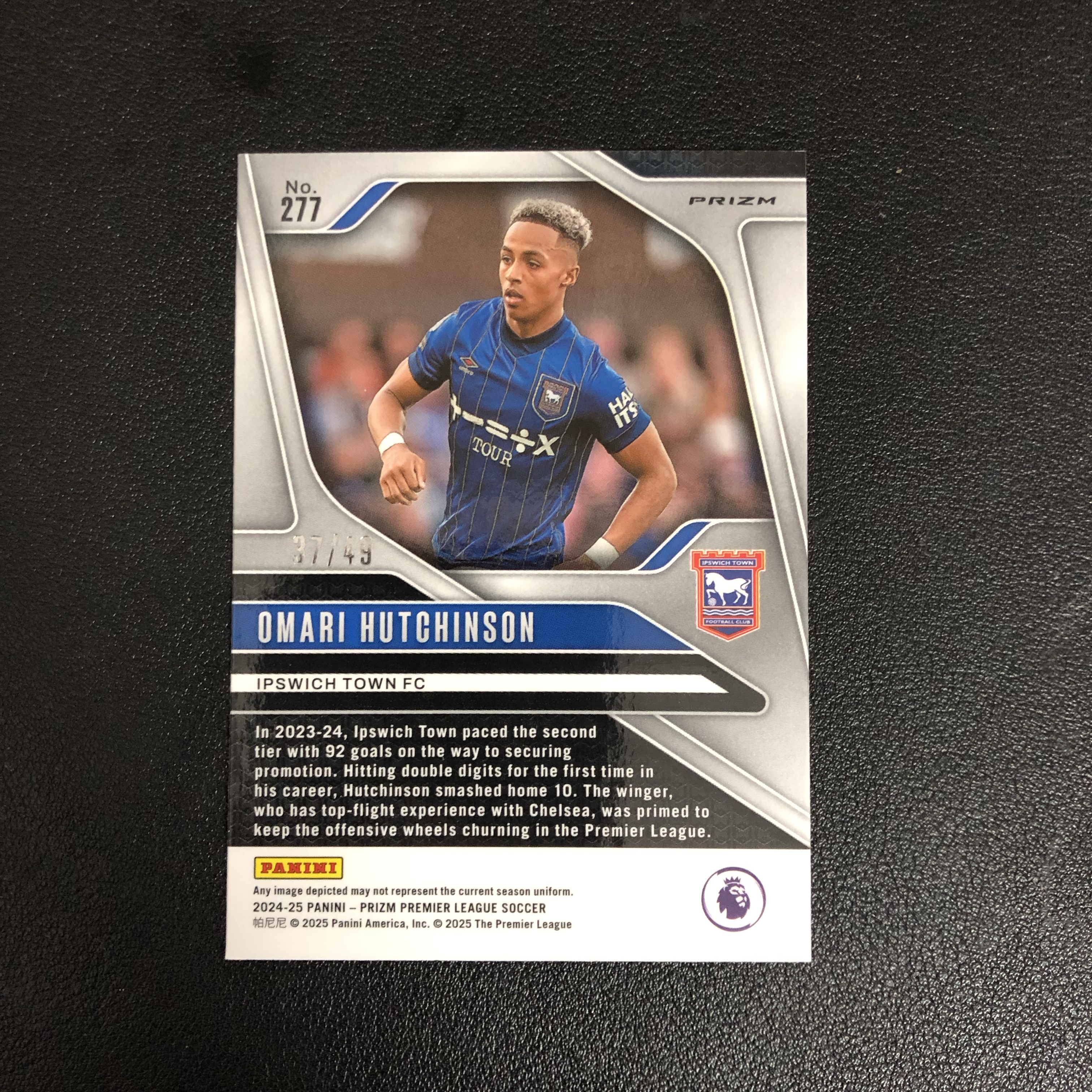 2024-25 Panini Prizm Omari Hutchinson RC 英超 pz 伊普斯维奇 哈钦森 新秀 37/49编 红折 红镭射折 卡品如图 默认微瑕 收藏必备(wzx)