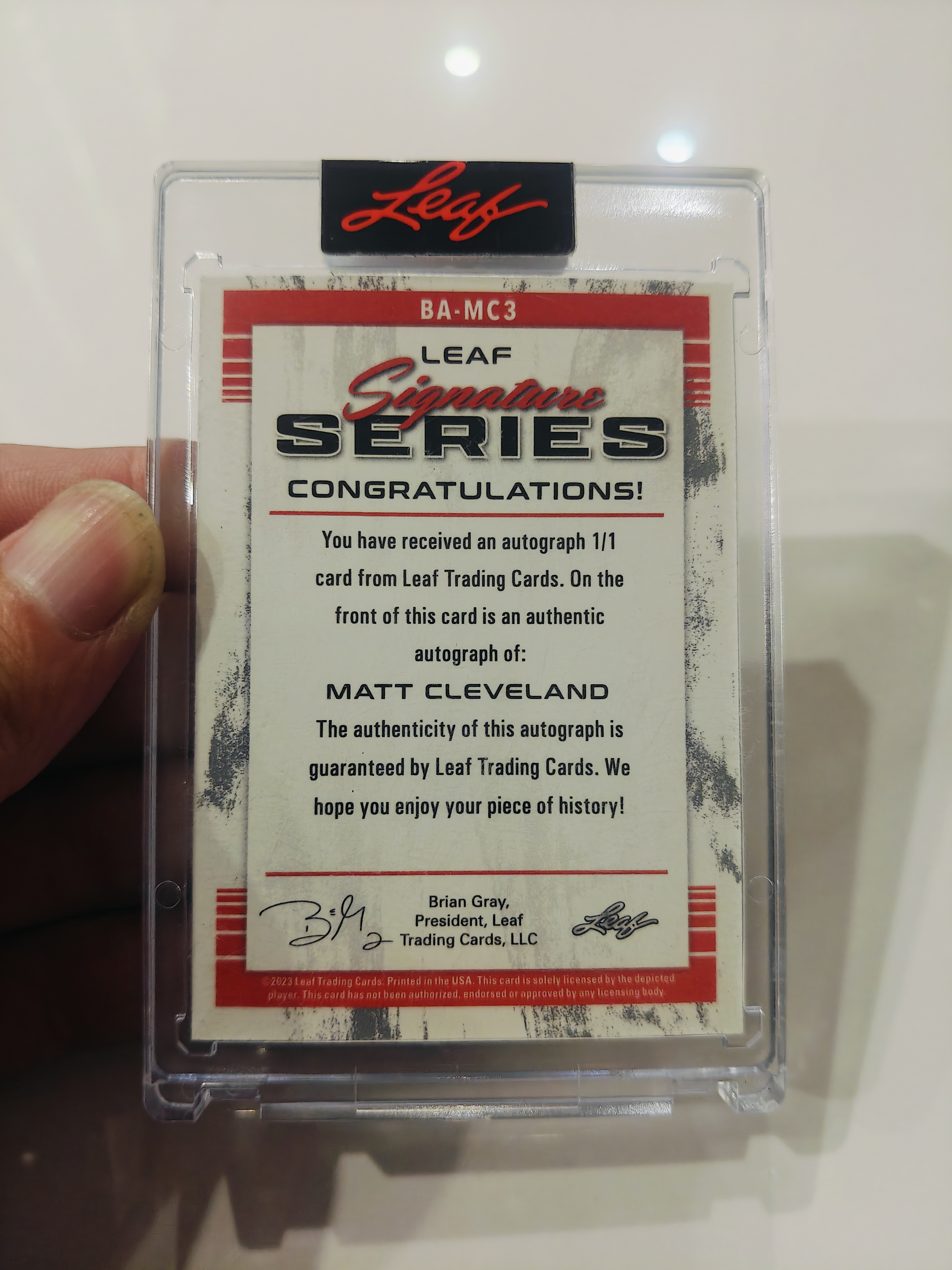 2023 Panini UD Black Matt Carroll leaf 骑士 马修 克利夫兰 签字 1/1 1of1 1编 麦迪接班人 收藏必备 原封砖