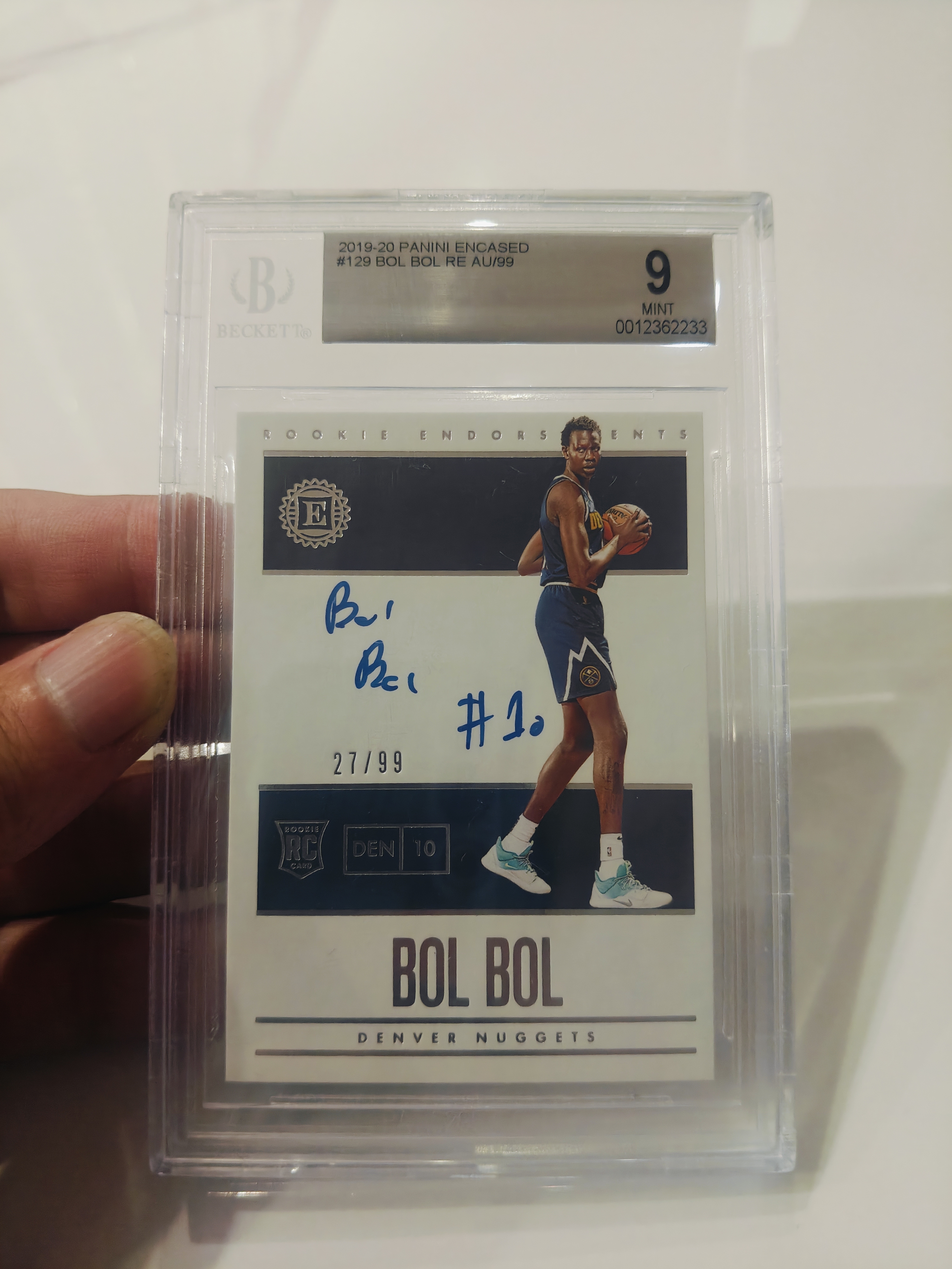 2019-20 Panini Encased Bol Bol 云端 掘金 太阳 波尔 波尔 新秀RC 签字 卡签 背号签 27/99编 金标 评级BGS9/10分 比肩文班亚马