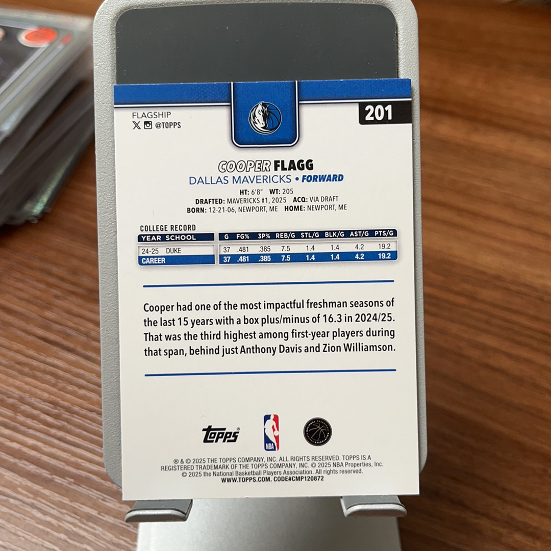 2025 Topps Flagship Cooper Flagg RC 独行侠 新秀 状元 库珀 弗拉格 美国之子 base 专收凑套