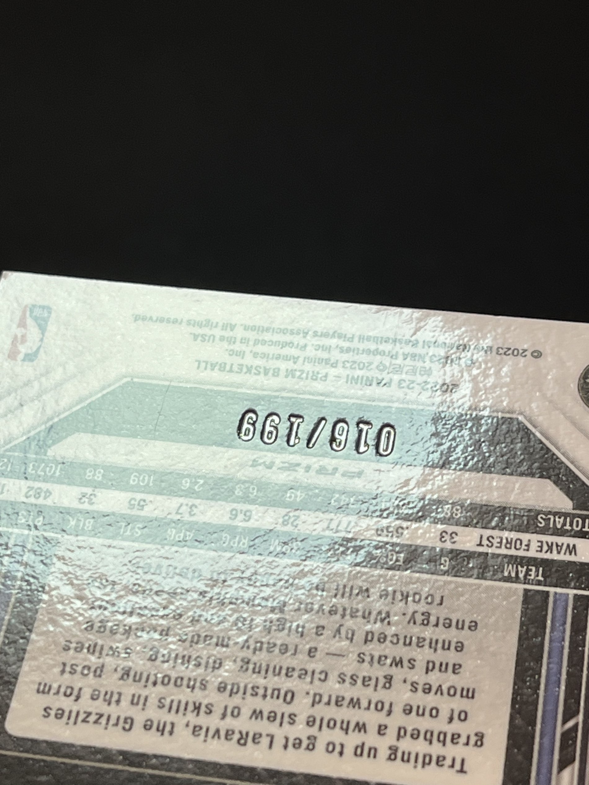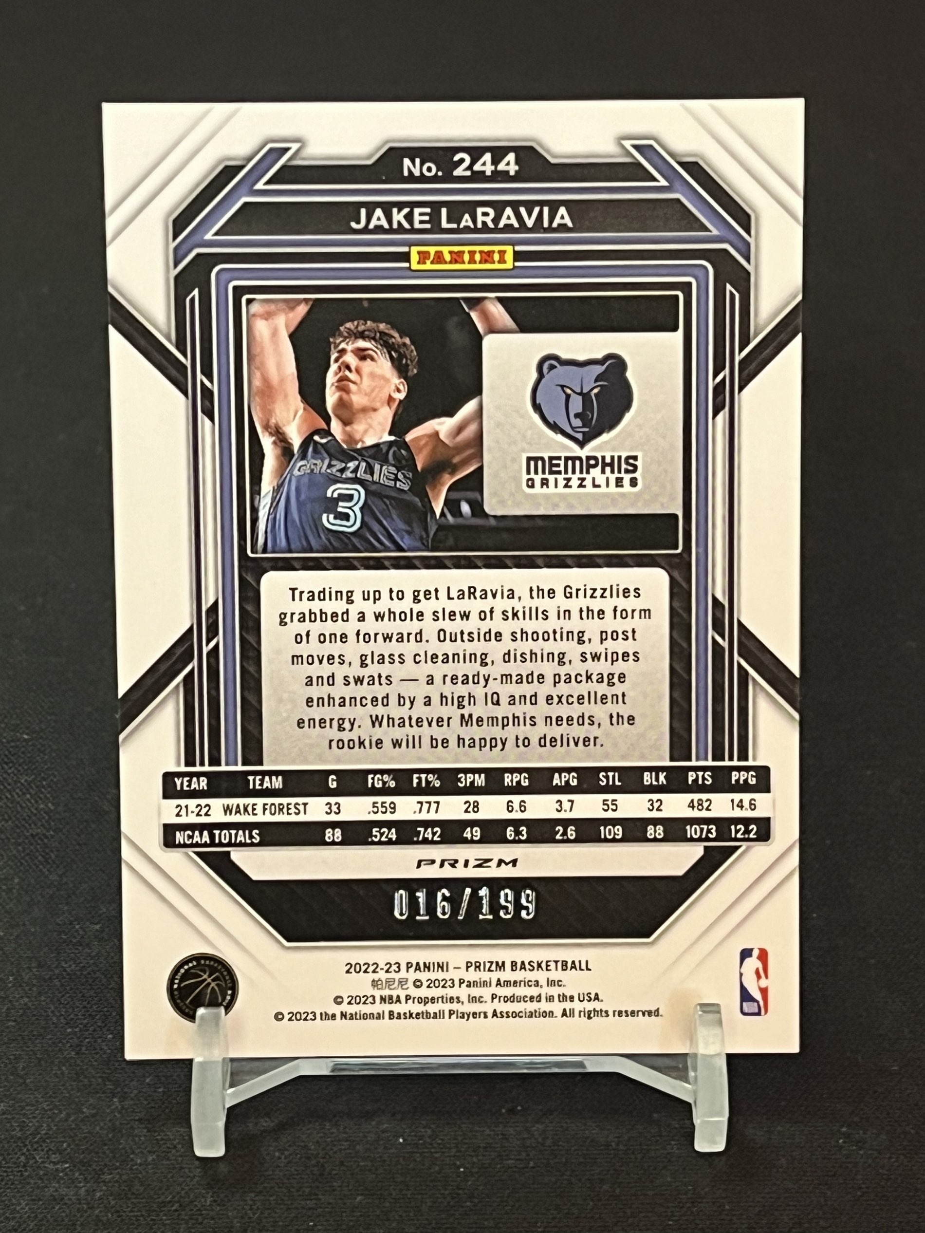 【浩行拍卖 截标预付82%】2022-23 panini prizm jake laravia 灰熊 杰克 拉拉维亚 RC 新秀 蓝折 折射 16/199编 专收必备 瑕疵看图「绪贝」1104Q01様