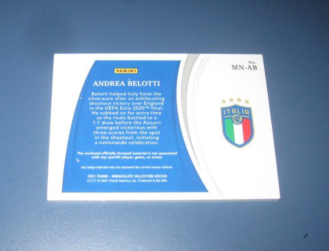 2020-21 Panini Immaculate BELOTTI 【凯哥拍卖】 帕尼尼 IMM 球星卡 实物 球衣卡 带编 99编 意大利 贝洛蒂 极微小瑕疵 品相如图